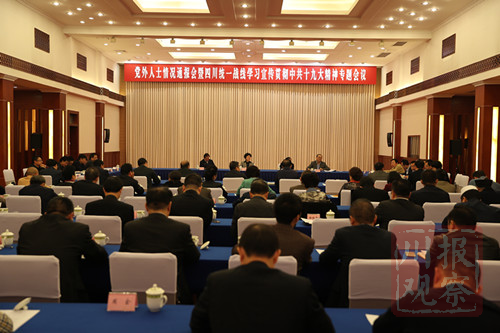 会议强调,要以习近平新时代中国特色社会主义思想为统揽,坚持围绕中心、服务大局、主动作为、争创一流,推动十九大精神在四川统一战线落地落实,为决胜全面小康,推动治蜀兴川再上新台阶凝聚最大力量。希望各民主党派、工商联和无党派人士等统一战线成员围绕十九大作出的重大决策部署,探索创新服务大局的工作思路和重点,围绕推动创新创业、发展实体经济、助力脱贫攻坚等各项事业发展献计出力,不断彰显新时代统一战线的重要法宝作用。