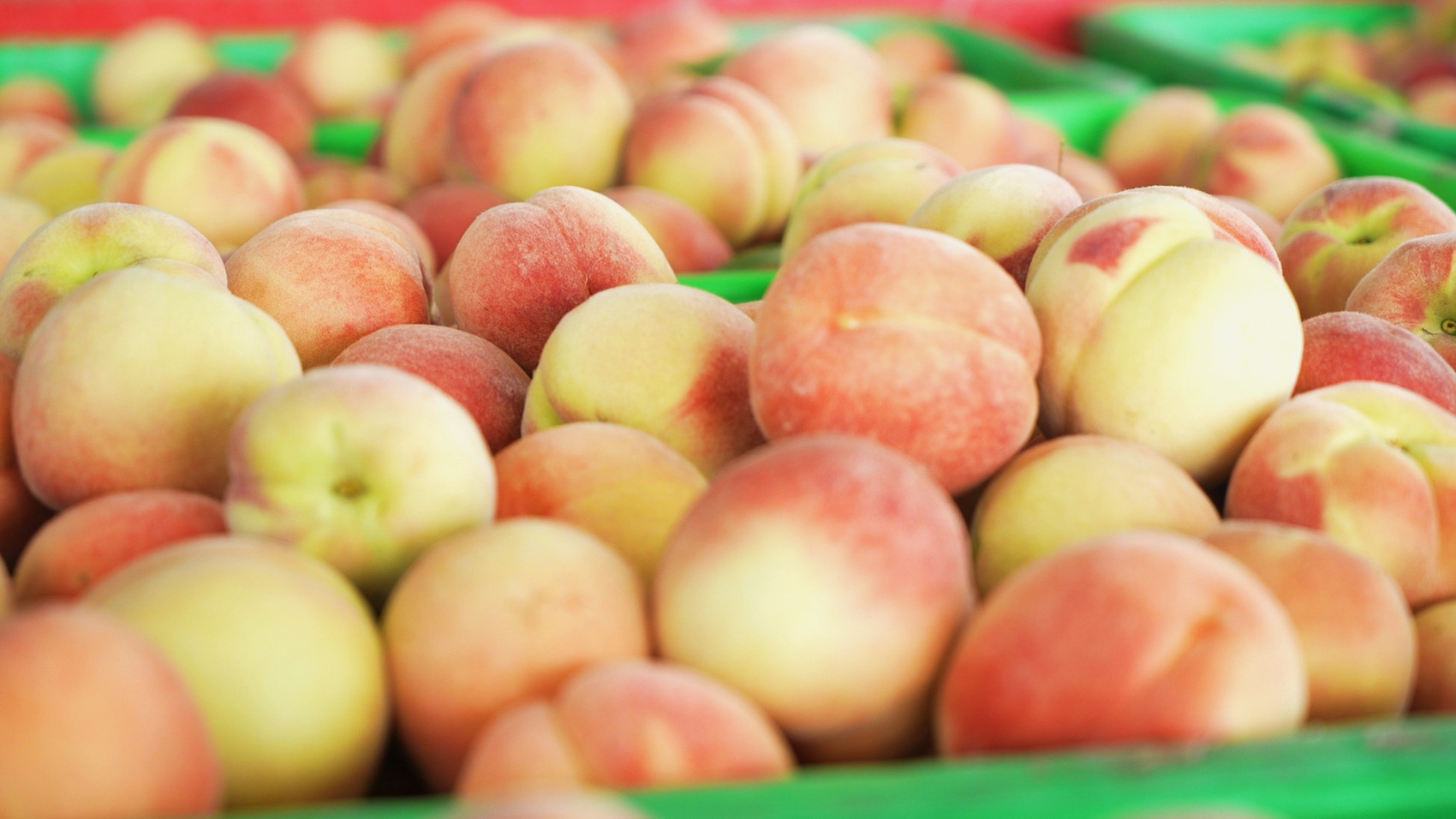 刚采摘的桃子。