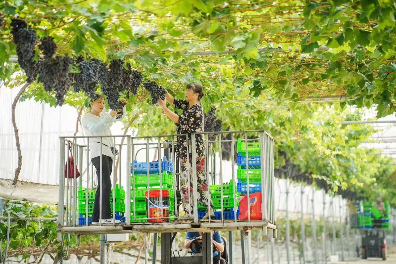 走进果园村,7000余亩葡萄园蔚为壮观,巨峰、美人指、阳光玫瑰等48个优质品种在这里茁壮生长。清晨的阳光下,村民们早已在田间忙碌,施肥、修枝、疏果,每一个动作都娴熟而精准。