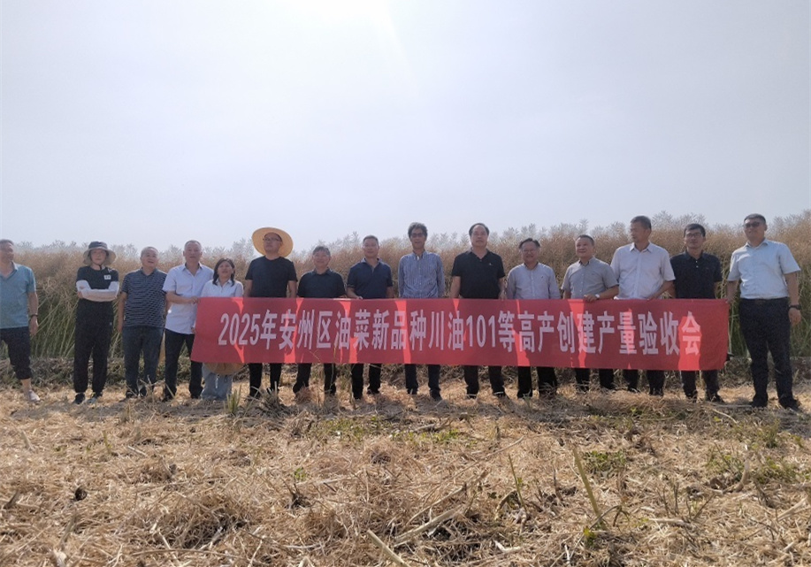四川省农业科学院作物所专家团队在各地示范新品种的同时,积极配套了抗逆丰产、机械化分段收获、农机农艺相融合等主推技术,而各个产油大县也在“百县千片”的高产竞赛中持续加大新品种新技术的推广力度,更使增产效果突显。在四川省作物学会组织的“川油”系列油菜品种的测产中,各产油大县进行大面积实收的交叉测产,并且是在采用一段式机收、机收损失率较大的情况下,取得了平均亩产252.98公斤的好成绩。