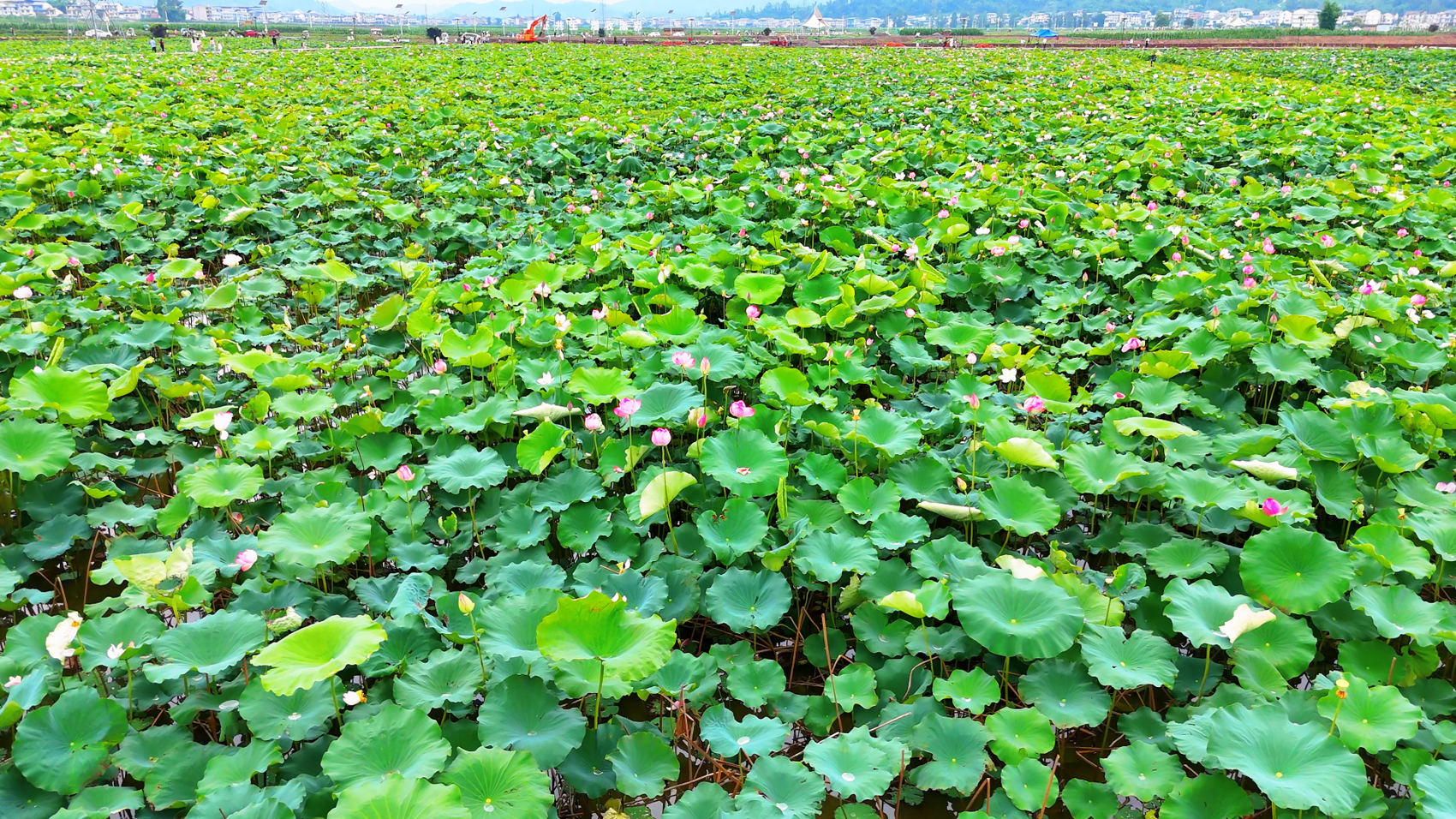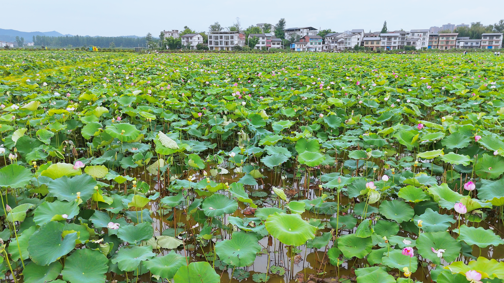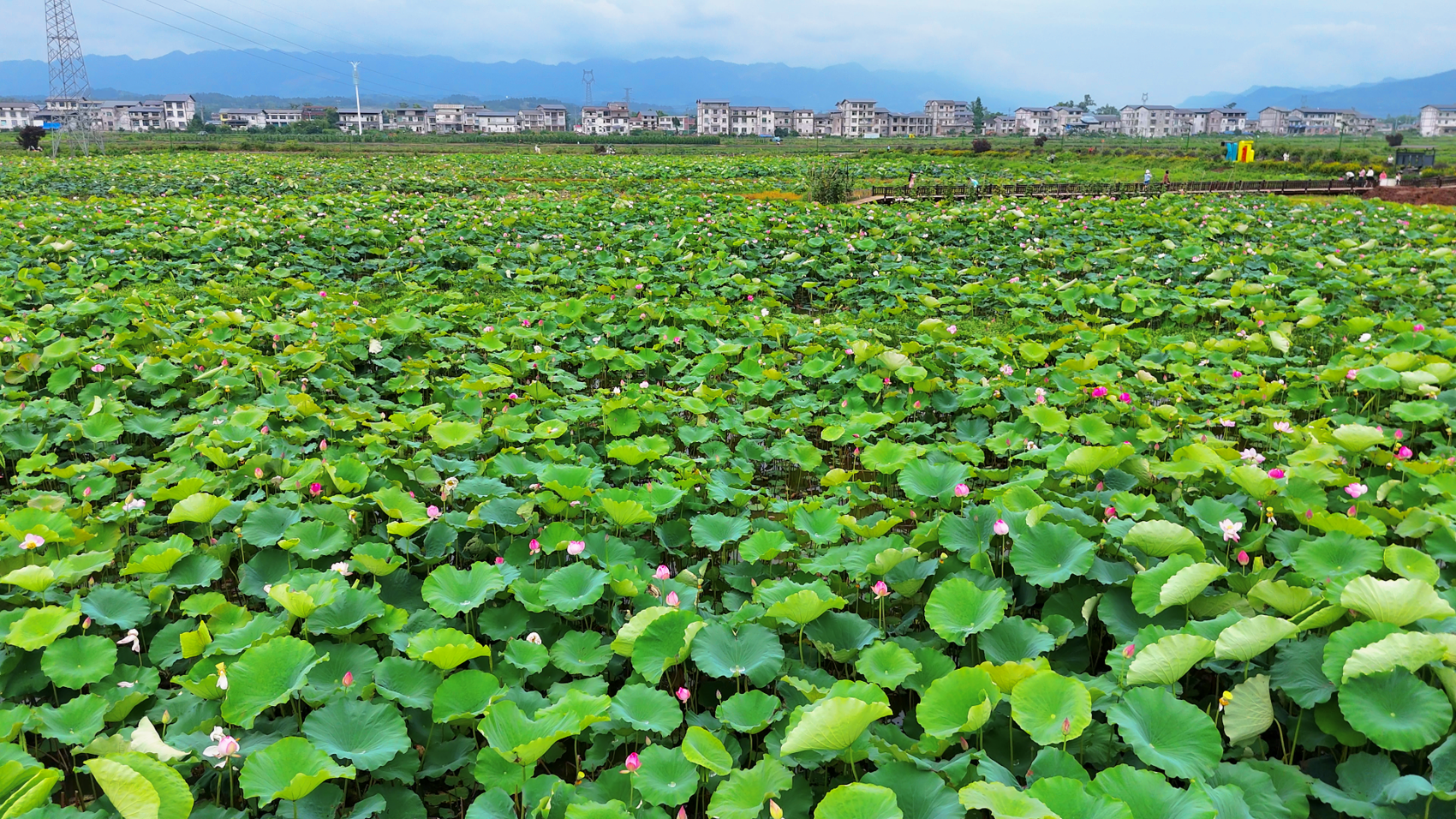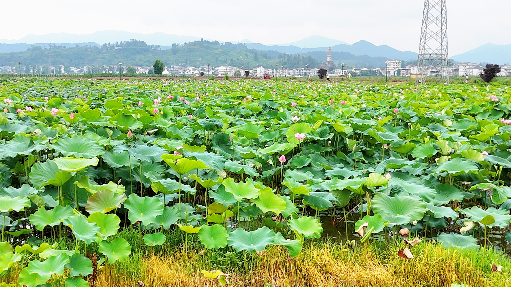 近日,达州市开江县宝塔坝村的千亩荷塘迎来花期。碧叶连天、粉荷竞放的美景,吸引了众多游客前来打卡。走进宝塔坝村,连片荷塘与远山、村落相映成趣,层层荷叶随风起伏如碧浪翻涌,呈现出“人在画中游”的意境。