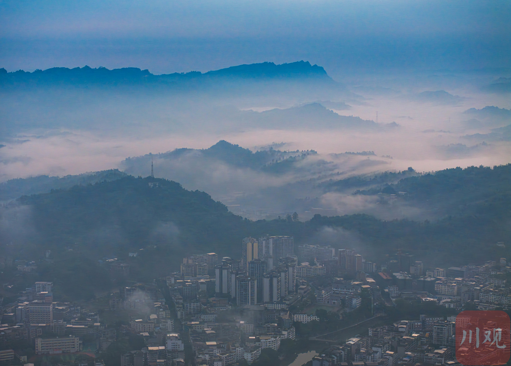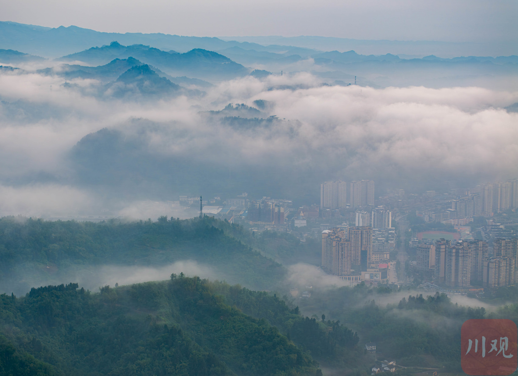 6月的清晨,第一缕阳光穿透云海,洒在乐山市沐川县城的周围。金色的光芒洒满山间,丁达尔效应显现。光,仿佛有了形状。微风轻拂,云雾缭绕,四周的山峰若隐若现,宛如一幅流动的水墨画。