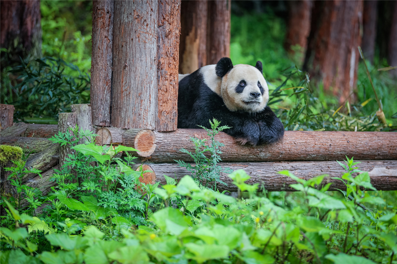 在大熊猫国际溯源营地惬意生活的大熊猫