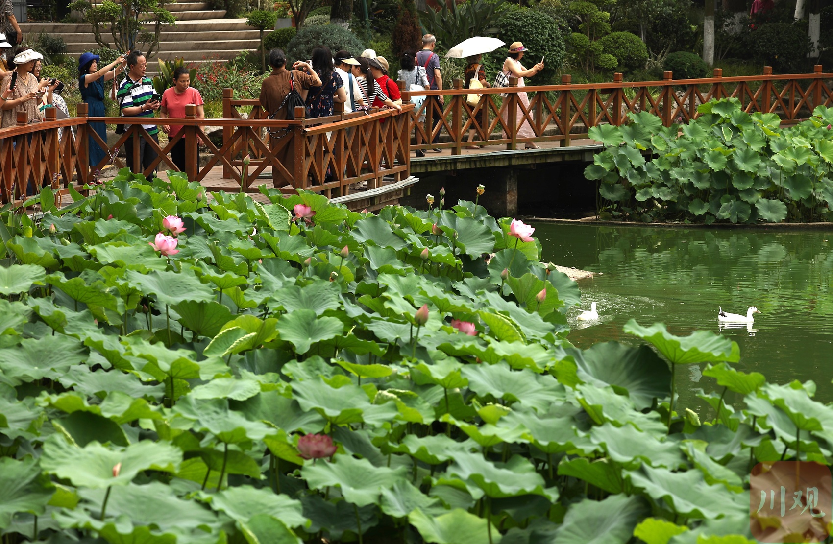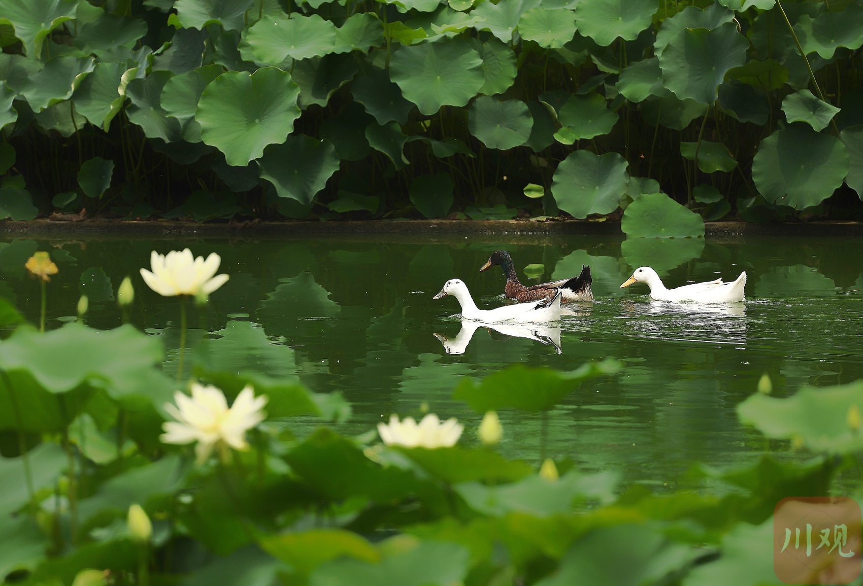 6月5日日芒种时节,蓉城夏意渐浓。成都市文化公园内的荷塘新荷初绽,一早池畔就围满了赏花、拍照的人群。据工作人员介绍,自 2018 年起,公园优选 9 个品种的荷花栽种于池塘,其中两款还是引进的太空荷花 ——“太空红旗” 和 “太空飞天”。池中莲影摇曳,不时有鸭子悠然游弋、白鹭觅食。翠鸟与蜻蜓也不时在荷叶间驻足,这些灵动身影为荷塘画卷添上点睛之笔。