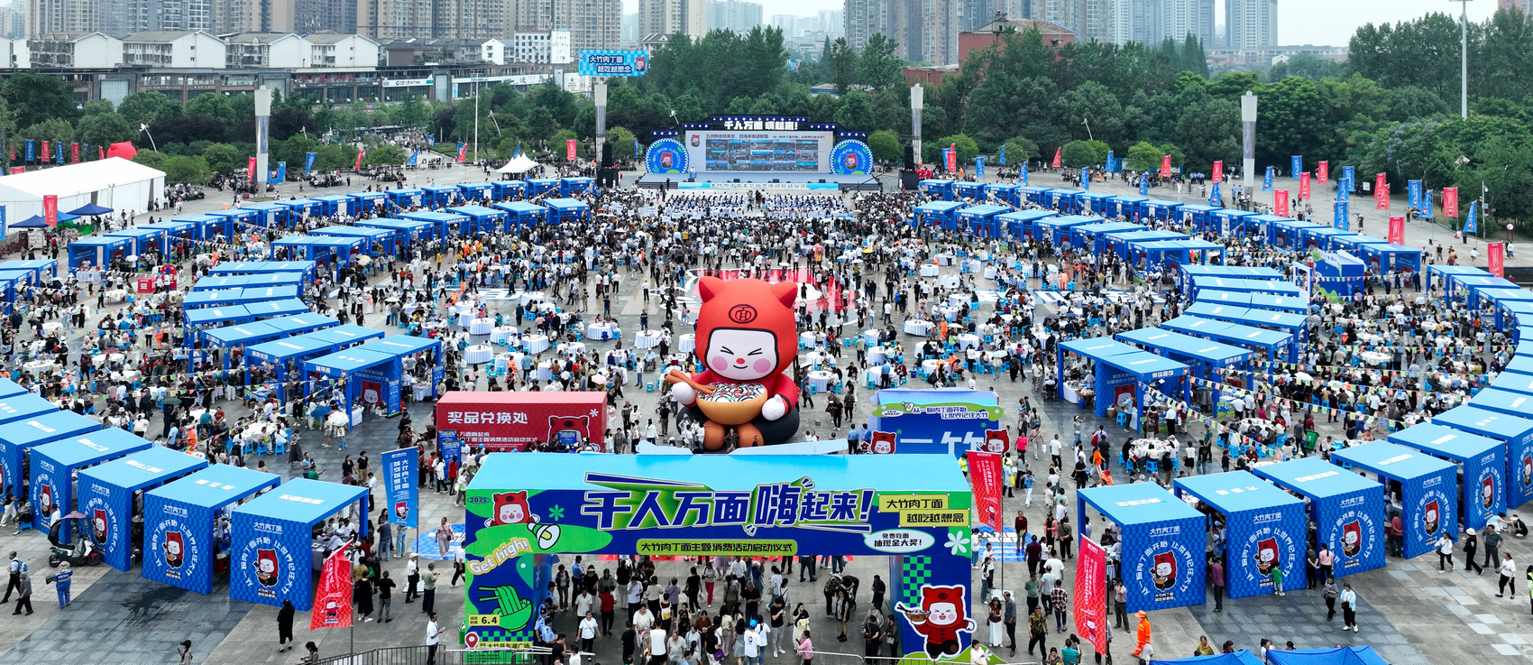 6月4日,大竹县东湖广场,达州市大竹县“千人万面嗨起来” 大竹肉丁面主题消费活动启动。当天,大竹县发布“大竹肉丁面”区域公用品牌及其核心烹饪技术规范,标志着大竹肉丁面踏上从街头小吃到富民特色产业的升级之路。