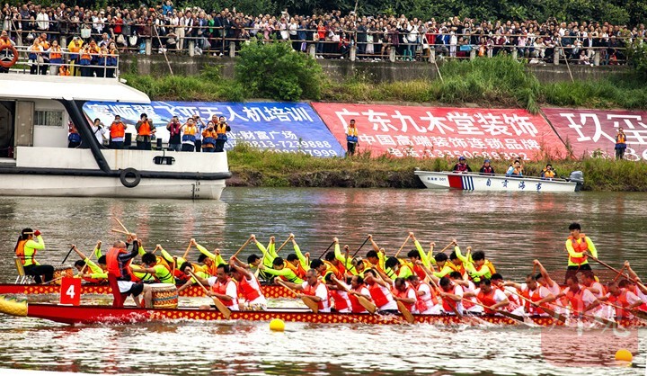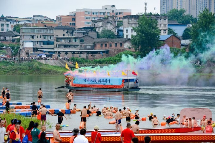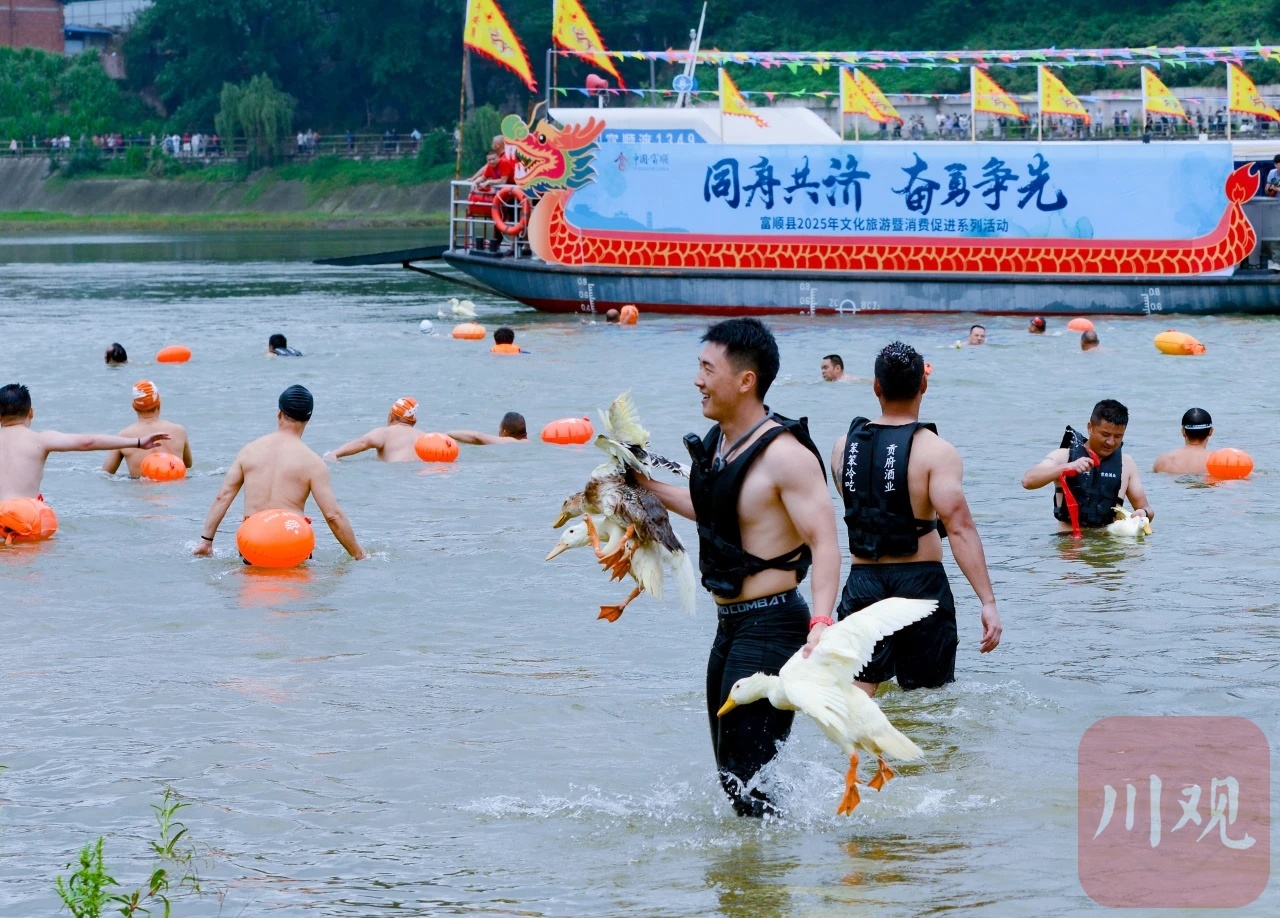 水上活动点燃端午消费引擎。5月31日,富顺沱江河畔人潮涌动,传统龙舟点睛仪式后,三大水上项目引爆消费链。10支自贡市赛艇和皮划艇队伍率先炫技沱江,为随后20支龙舟队的激烈竞渡热身领航,劈波斩浪的盛况吸引现场近9万观众围观。沿岸餐饮区因此受益,单日营业额突破10万元,本地运动品牌及户外装备销售也增长15%以上。在抢鸭大战中,200余名游泳健将水中角逐,联动商户推出的“豆花鸭宴套餐”有效拉动消费近20万元。龙舟赛与抢鸭子活动的精彩场面受到中央及省市媒体广泛关注,全网直播观看量高达400万。