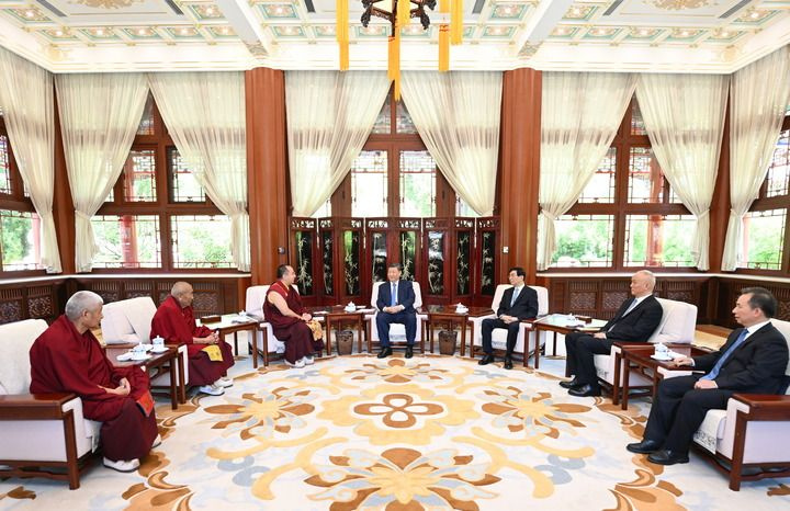 6月6日,中共中央总书记、国家主席、中央军委主席习近平在北京中南海接受班禅额尔德尼·确吉杰布拜见。新华社记者 谢环驰 摄