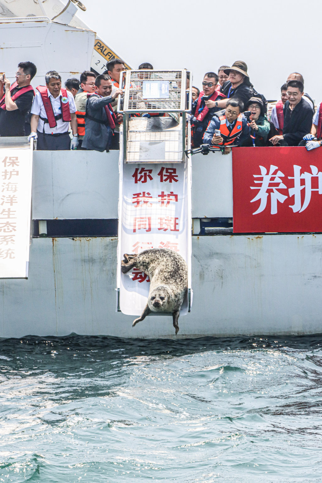 西太平洋斑海豹放归大海