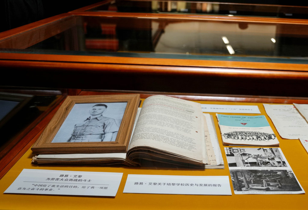 6月6日在上海市档案馆展厅内拍摄的国际友人路易·艾黎的相关档案。