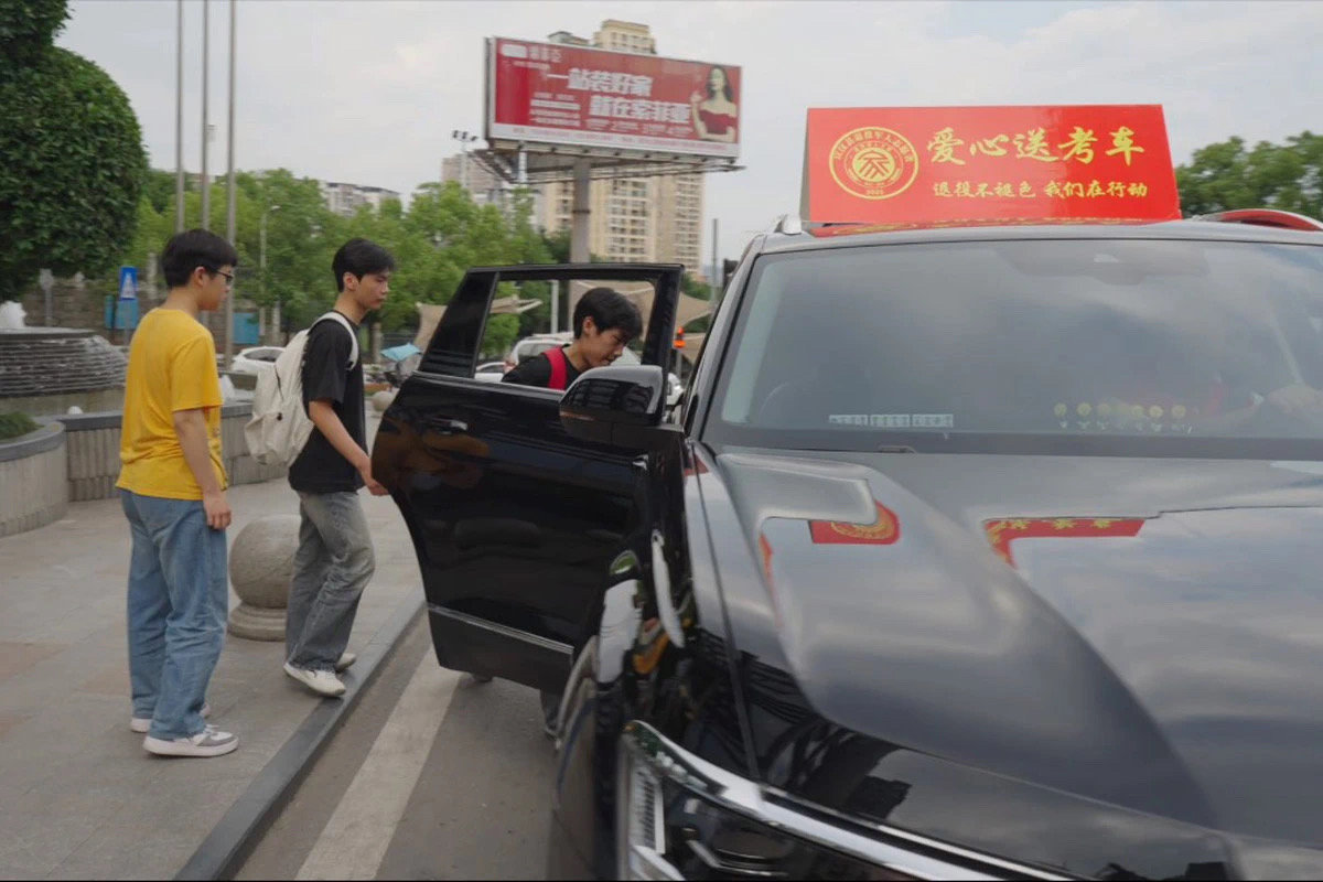 志愿服务队将送考车辆贴上醒目的“爱心送考”标识,采用 “定点+流动”双轨服务模式,除在考点附近停靠的专职车辆外,也实施“路上挥手即停”的灵活模式,随时响应考生需求。