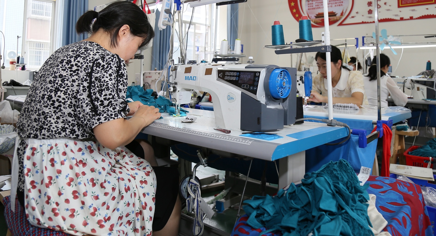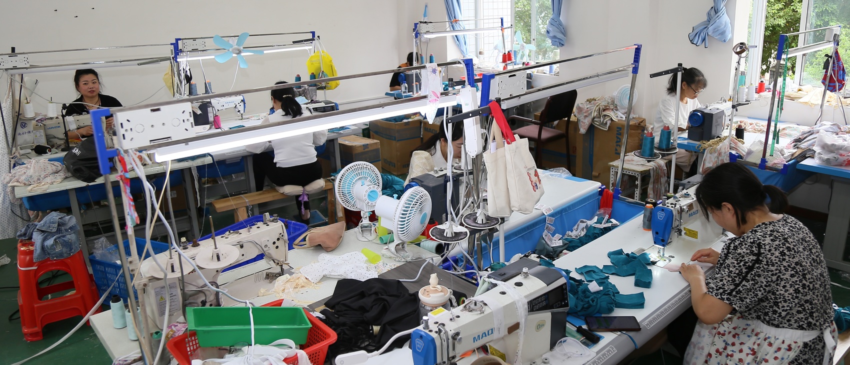 五里牌社区微工厂内, 宝妈们正在工作
