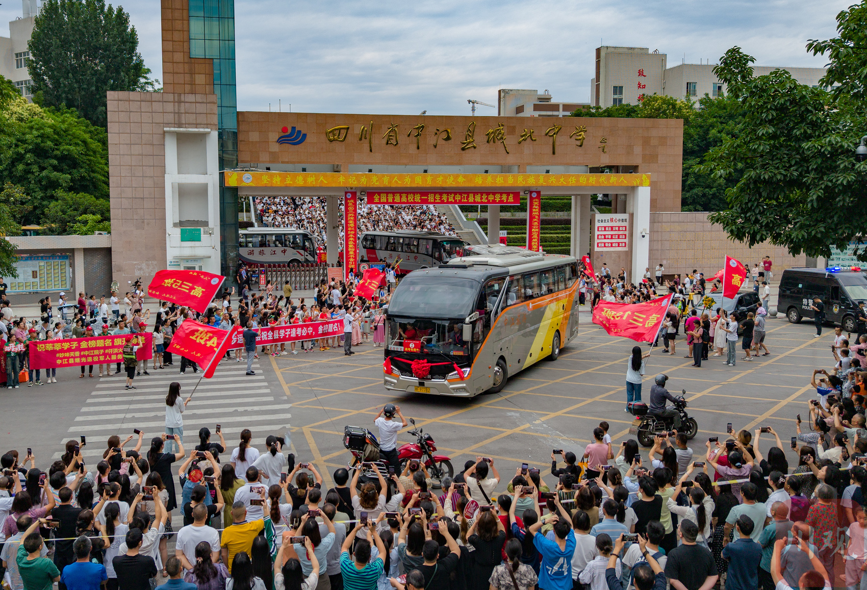 6月7日,德阳市中江县城北中学高考送行,老师家长用掌声、呐喊声为考生加油。C视觉签约摄影师 袁凤 摄