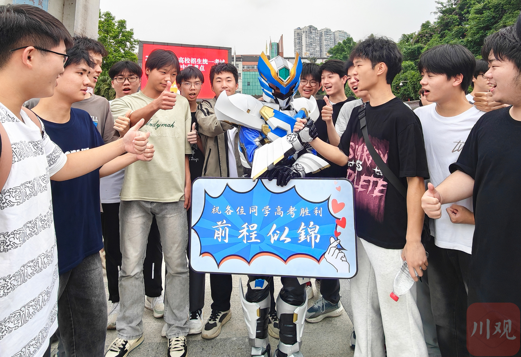 6月7日,在广安中学考点,一位学长装扮成“铠甲勇士”,为学弟学妹高考加油助威。C视觉签约摄影师 张国盛 摄