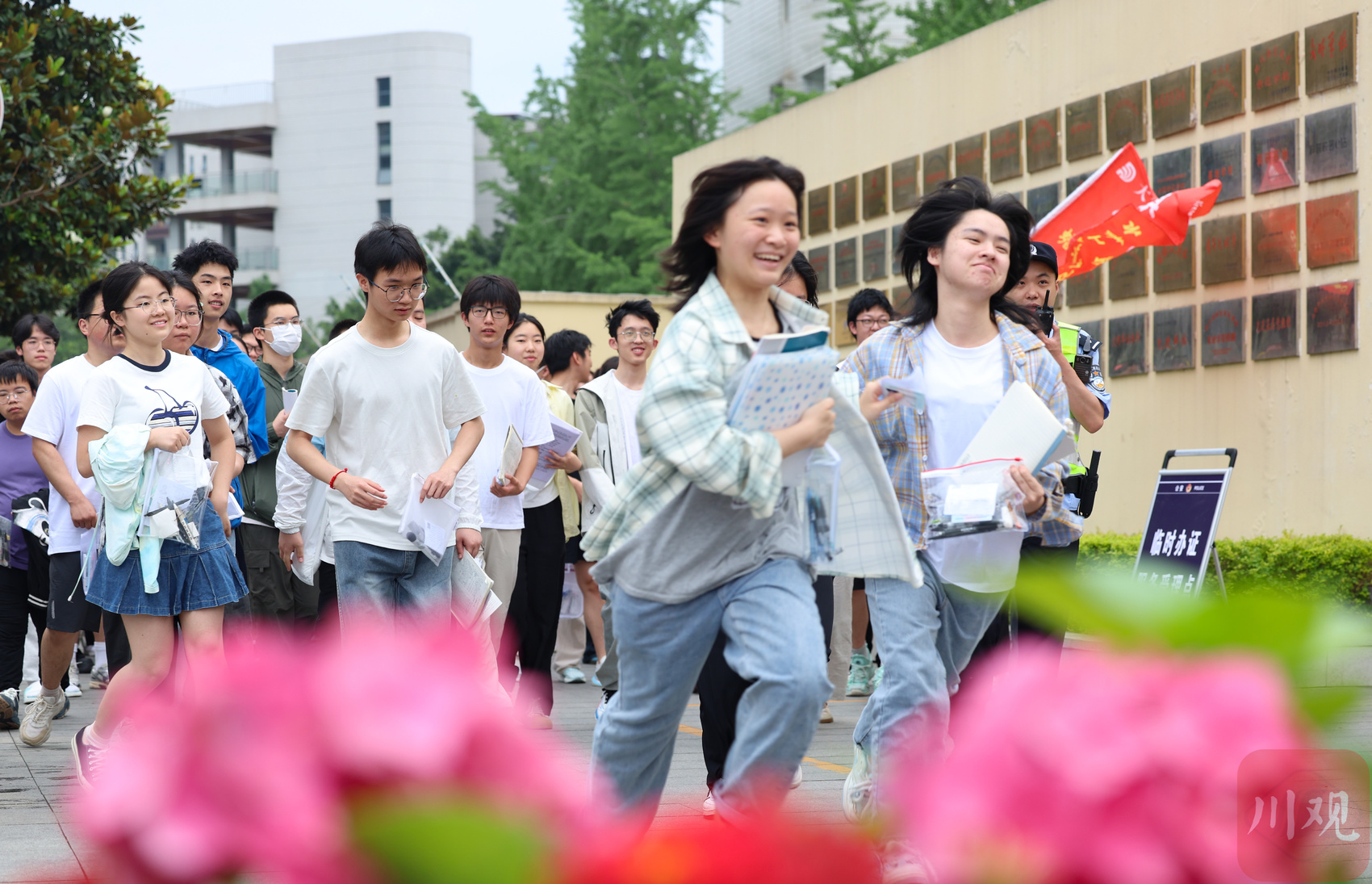 6月7日,成都新区石室天府中学考点,考生面带笑容走出校门。C视觉签约摄影师 蒋光丛 摄