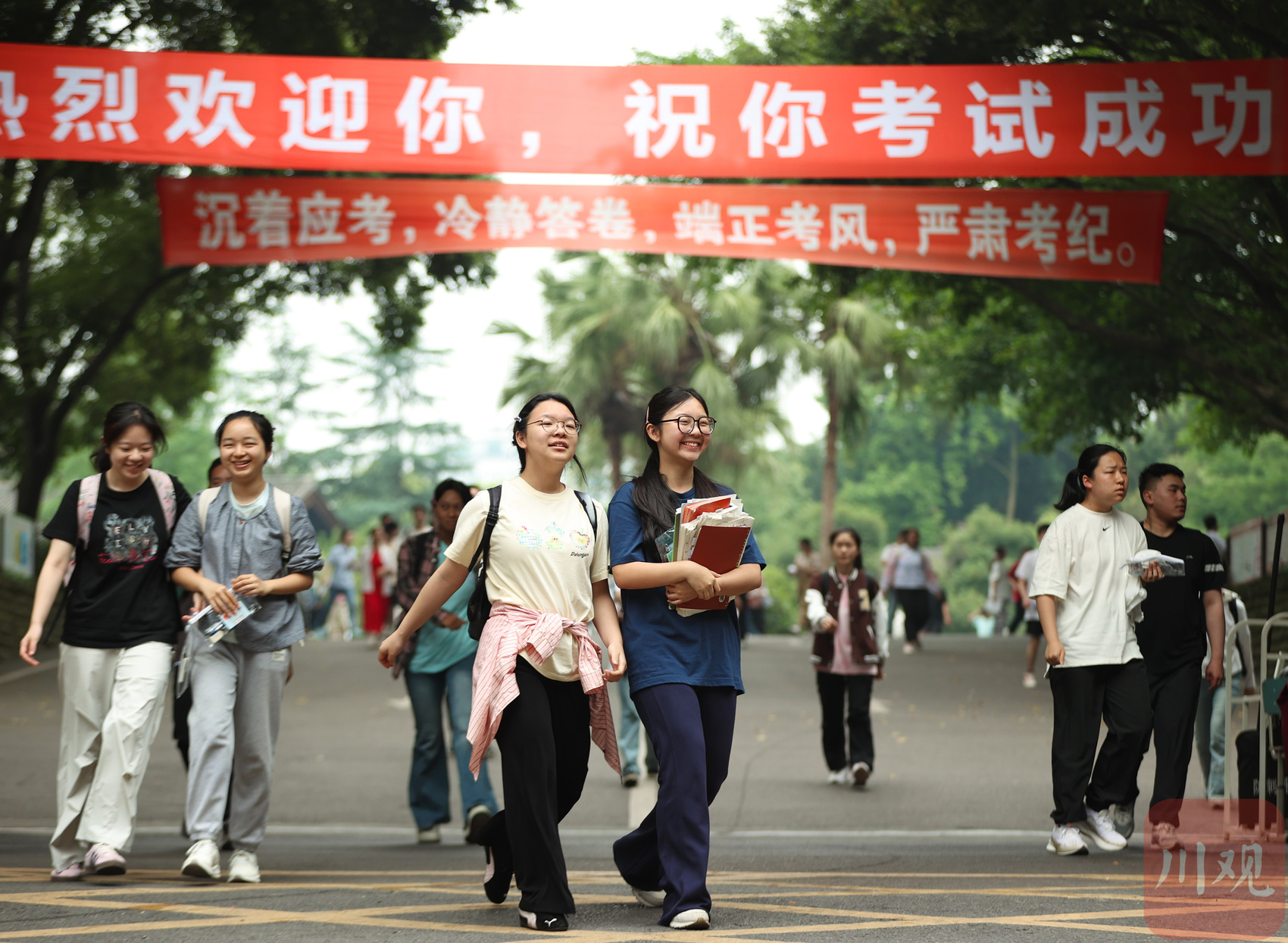 在四川成都、泸州、广安、内江等地考点外,C 视觉签约摄影师用镜头捕捉动人瞬间:考生自信赴考的坚定身影、家长场外守望的温情目光、保障人员忙碌坚守的感人场景,每一帧画面都定格着拼搏的力量与社会的关怀。