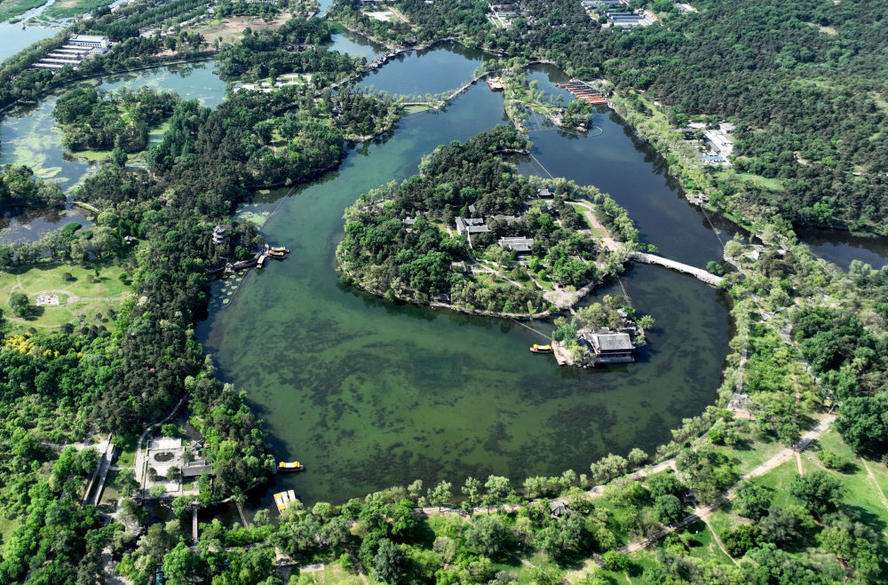 承德避暑山庄一角(2025年5月20日摄,无人机照片)。避暑山庄始建于1703年,是第一批全国重点文物保护单位,被列入世界遗产名录。
