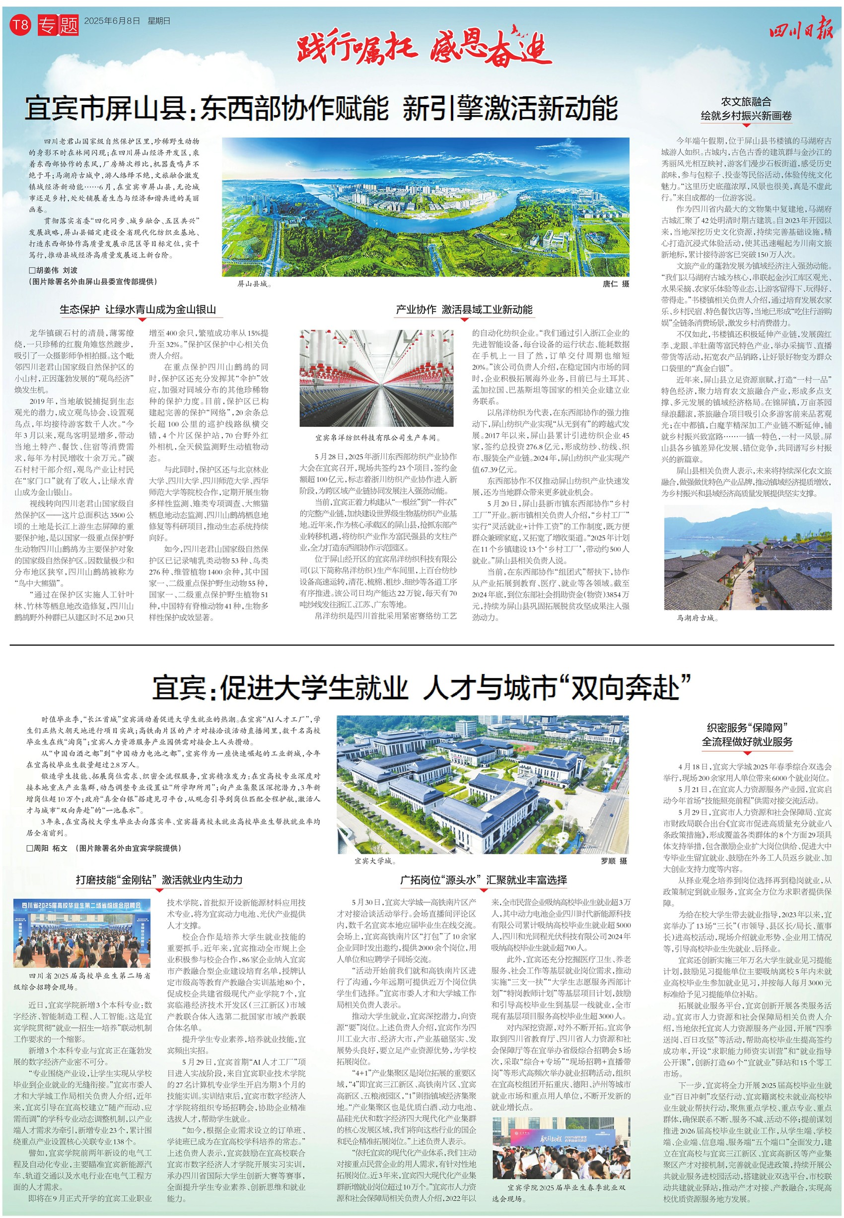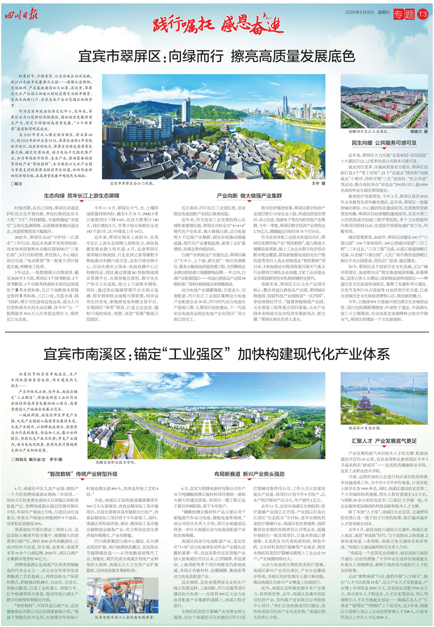 6月8日,《四川日报》推出8个整版特别报道,全方位展现宜宾推动高质量发展的生动实践。