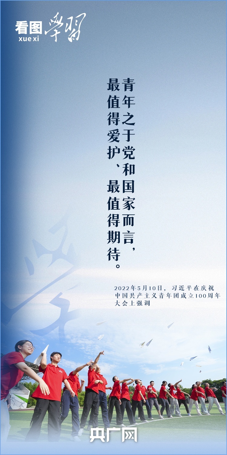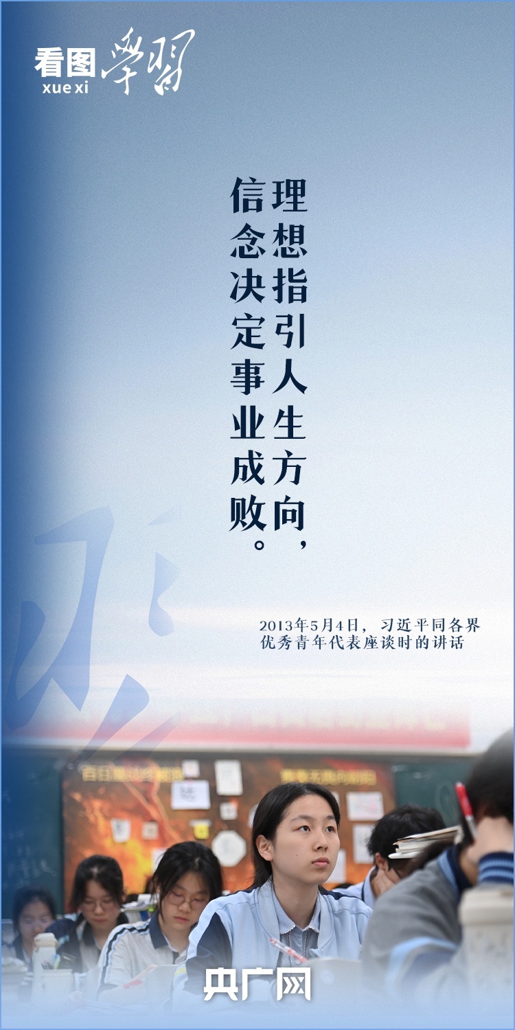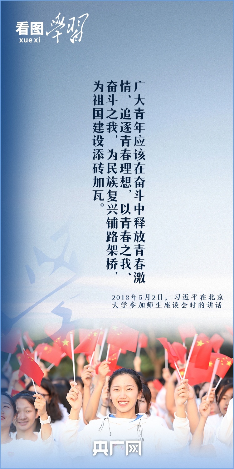 勉励新时代青年在奋斗中释放青春激情、追逐青春理想。