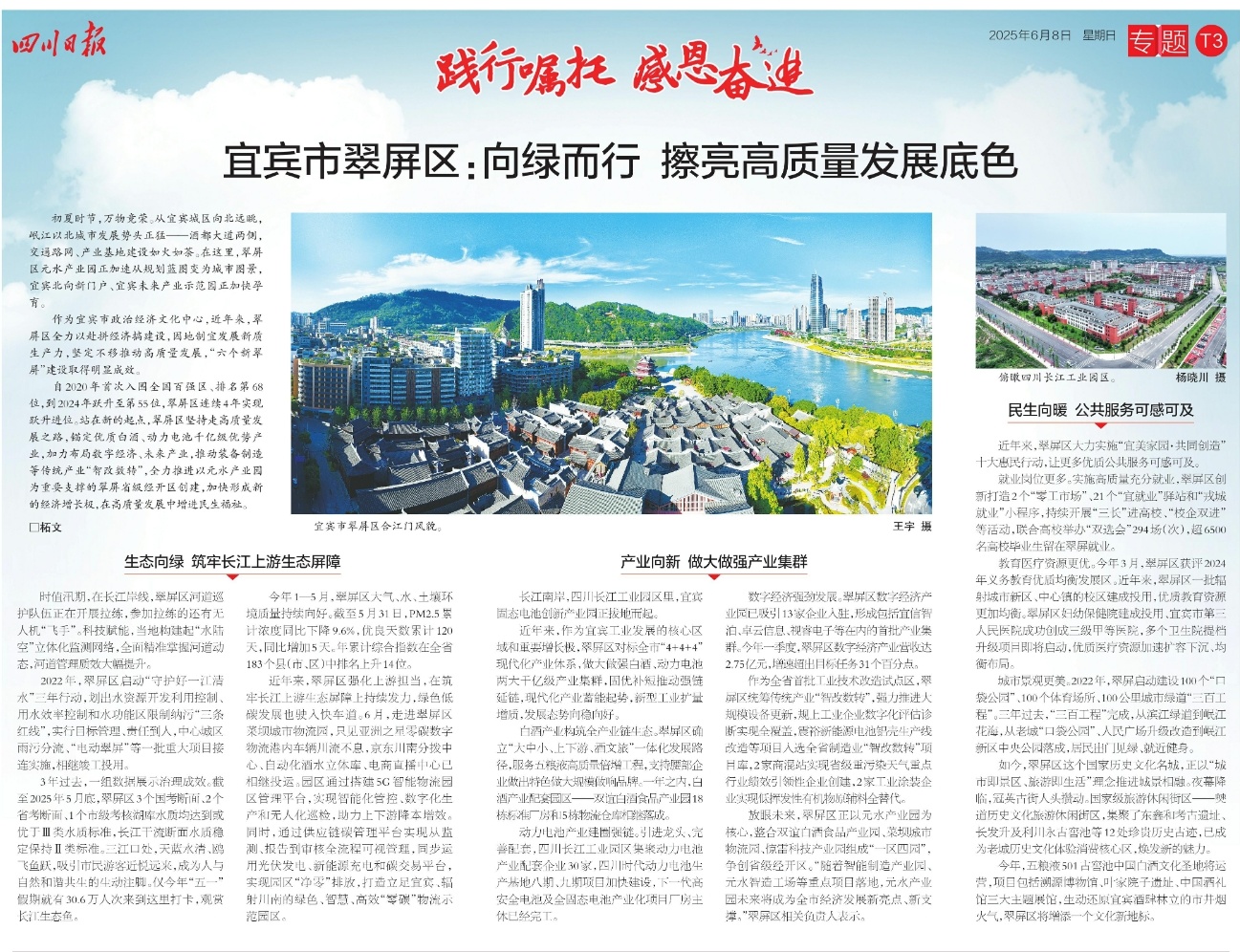 作为宜宾市政治经济文化中心,近年来,翠屏区全力以赴拼经济搞建设,因地制宜发展新质生产力,坚定不移推动高质量发展,“六个新翠屏”建设取得明显成效。