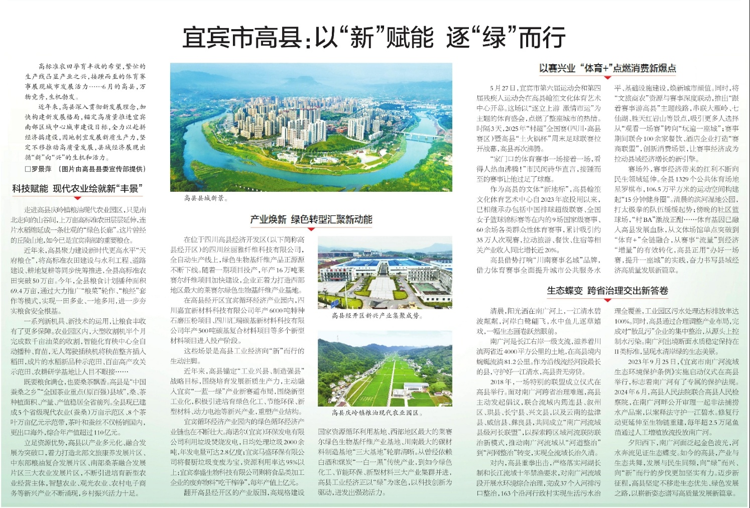 高标准农田孕育丰收的希望,繁忙的生产线凸显产业之兴,接踵而至的体育赛事展现城市发展活力……6月的高县,万物竞秀,生机勃发。