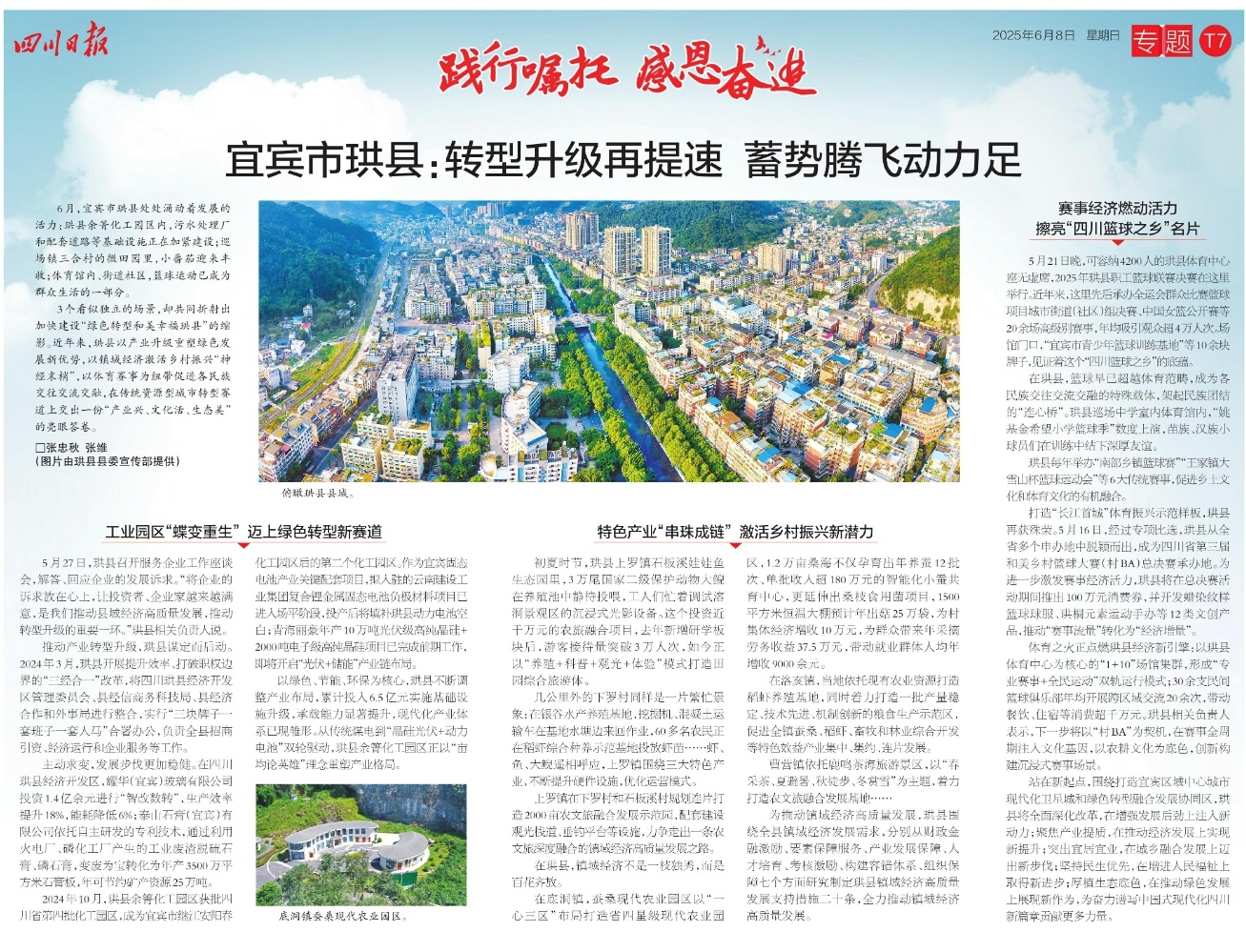 6月,宜宾市珙县处处涌动着发展的活力:珙县余箐化工园区内,污水处理厂和配套道路等基础设施正在加紧建设;巡场镇三合村的微田园里,小番茄迎来丰收;体育馆内、街道社区,篮球运动已成为群众生活的一部分。