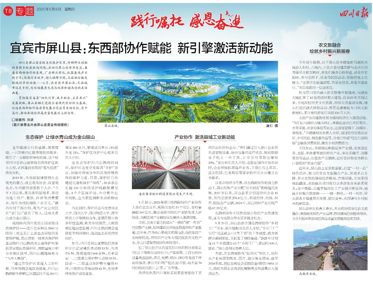 东西部协作不仅推动屏山纺织产业快速发展,还为当地群众带来更多就业机会。