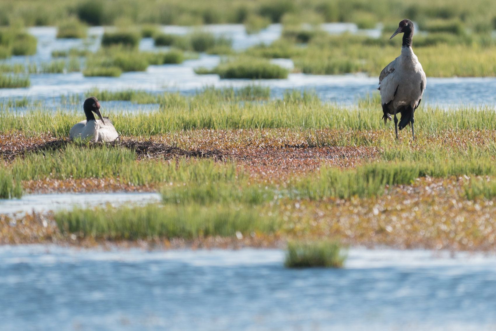 黑颈鹤是国家一级保护动物,也是唯一在高原上繁殖和越冬的鹤类。根据经验,每年3月,黑颈鹤会从900多公里外的越冬地云南、贵州飞赴若尔盖湿地。4月底至6月初,黑颈鹤会在繁育地分散开来完成产卵、孵化。黑颈鹤一般有两枚蛋,卵呈椭圆形,孵化时雌雄黑颈鹤轮流进行,一方孵化时另一方负责安全保护,避免危险。同年11月左右,它们将会带着新繁育的小鹤迁徙到云南贵州等地越冬,以此往复。