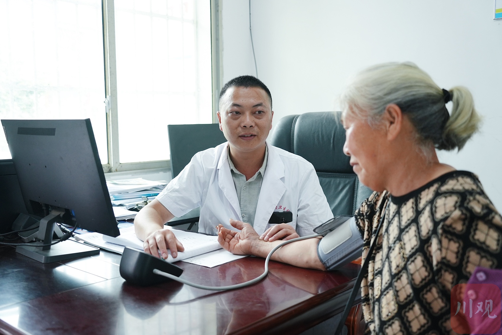 眉山市丹棱县仁美镇桂香村卫生室杨佳霖正在给村民看病。吴婕 摄