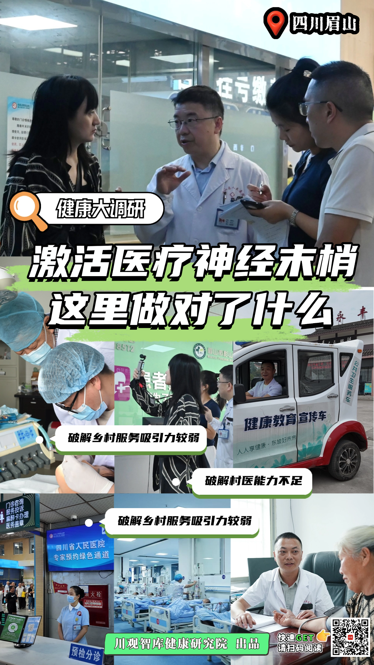 实地调研中,部分受访者坦言,过去基层优质医疗资源短缺,优质医疗资源下沉缺乏长效机制,往往呈现“蜻蜓点水”“来了就走”的短效化现象。眉山通过“名医工作站”精准下沉、“土特产+治未病”融合、“区域中心”辐射基层等方式,实现“道地药材天天用”“华西专家经常见”,让优质医疗“长”在乡村。