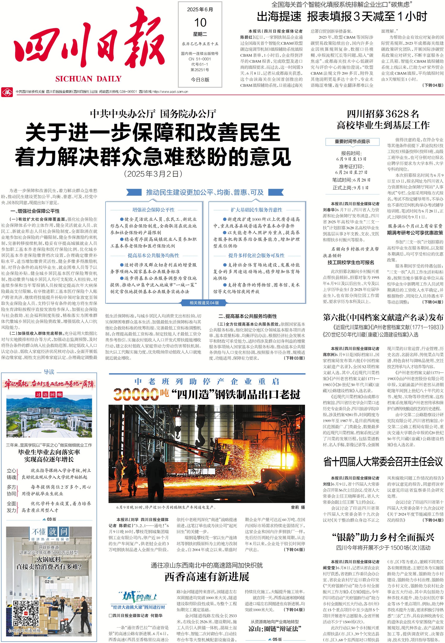 四川启动2025年"三支一扶"计划,面向高校毕业生招募3628人赴基层服务。招募名额向乡村振兴重点帮扶县倾斜,6月9日起报名,技工院校毕业生纳入此次招募范围。服务期间享受当地事业单位工资待遇、安家费及社保公积金,期满可享考研加分、公务员定向招录等政策。详情关注今日一版。
