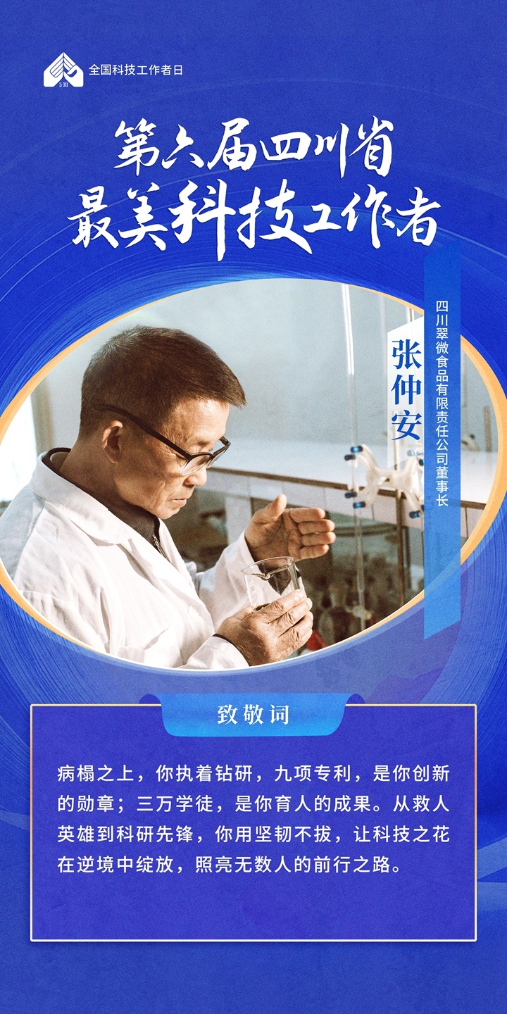 获评四川省第六届“最美科技工作者”感言:获此殊荣我倍感荣幸。40年里,从攻克孵化温控难题到探索无盐酿造技术,我始终相信科研源于热爱与坚持。实验室的日夜坚守、无数次的失败尝试,都是为了让技术造福更多人。未来,我会继续深耕生物发酵领域,用创新守护舌尖上的健康。