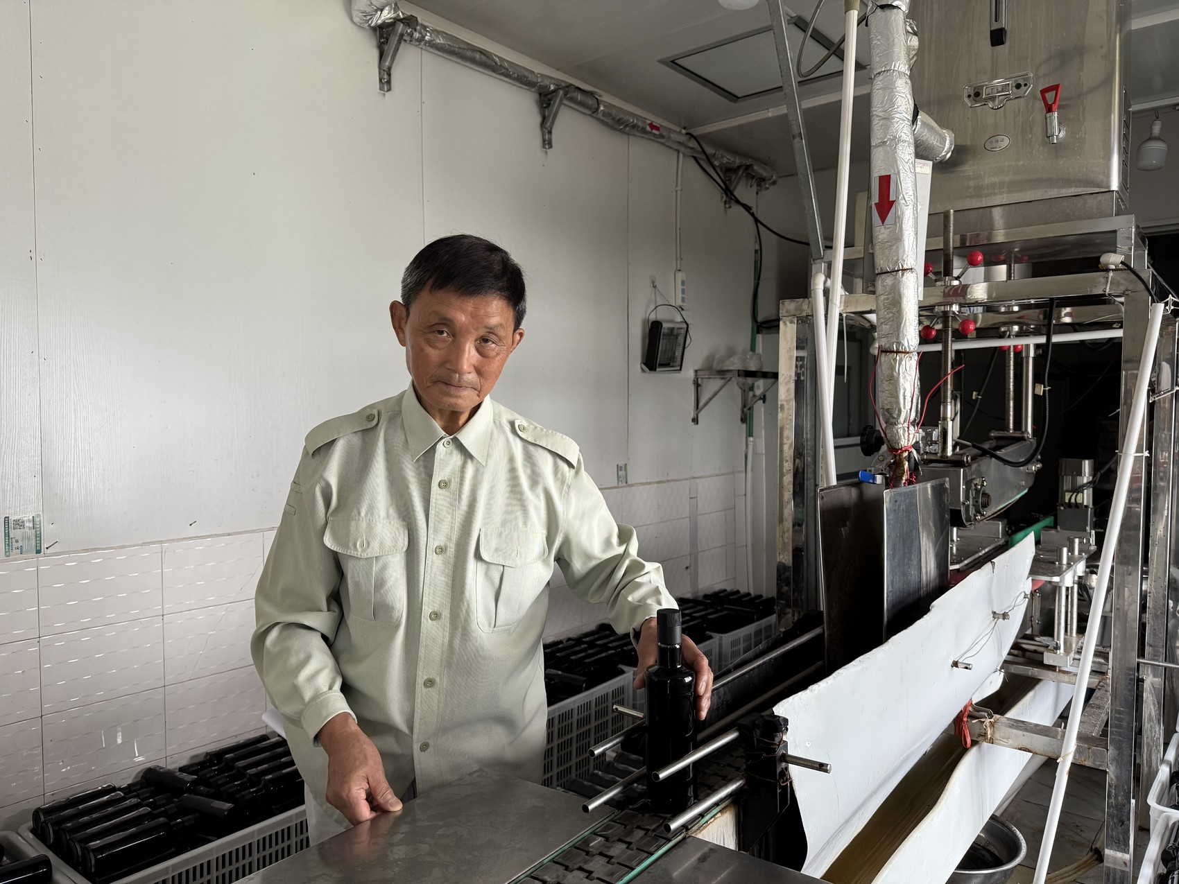 张仲安在酱油包装现场