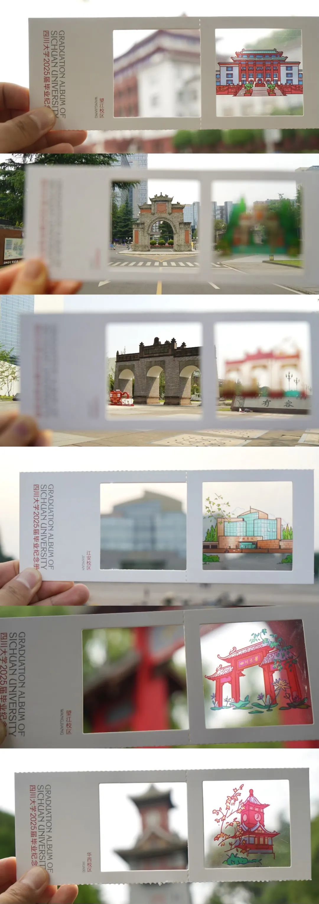 在四川大学江安图书馆窗格间流连的光斑,望江红门下摇曳的荷花,华西钟楼里往复的晨昏......这些标志性点位都见证了川大学子的青春,此次学校都将它们装进了大礼包中,打开礼盒就能看到自己的母校。