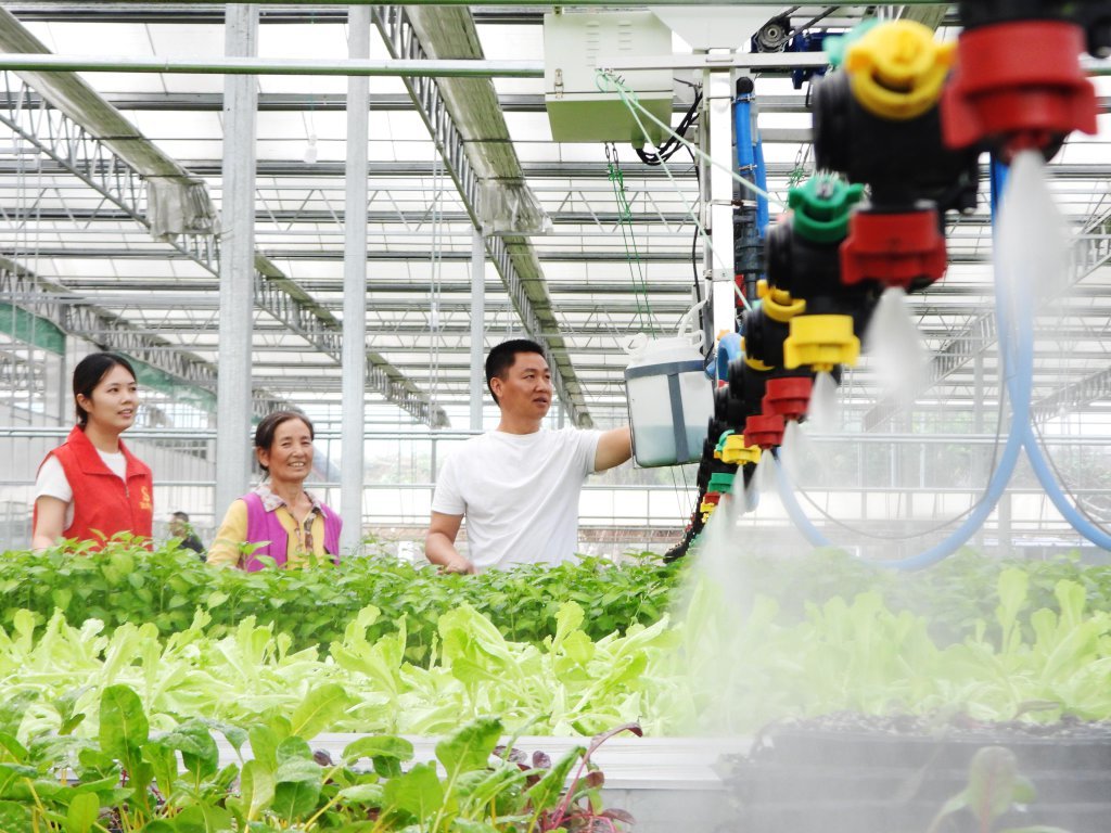 达州市达川区的一座“数字育苗工厂”里,智能灌溉系统正喷淋辣椒秧苗。 邓良奎 摄(C视觉)