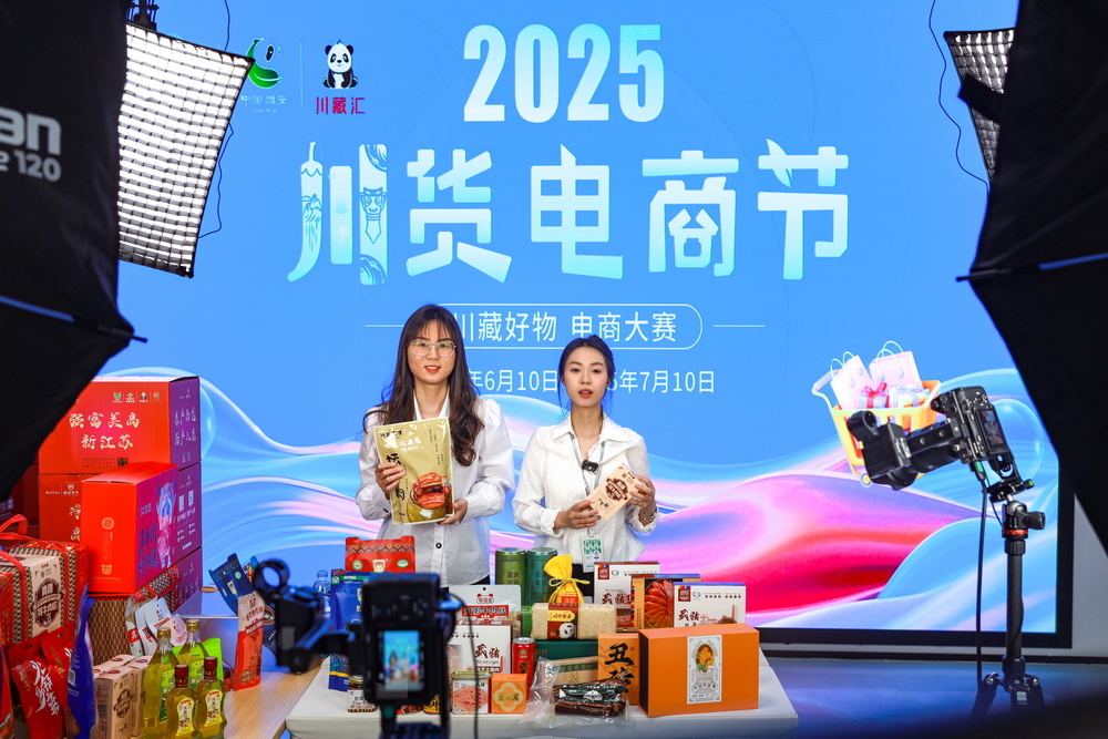 6月10日,2025年“川货电商节”川藏好物电商大赛在雅安开启。来自四川省雅安、眉山、甘孜、阿坝以及西藏拉萨、林芝等地的电商代表和企业代表,携400多件商品参加,助力更多川藏好物走向全国。