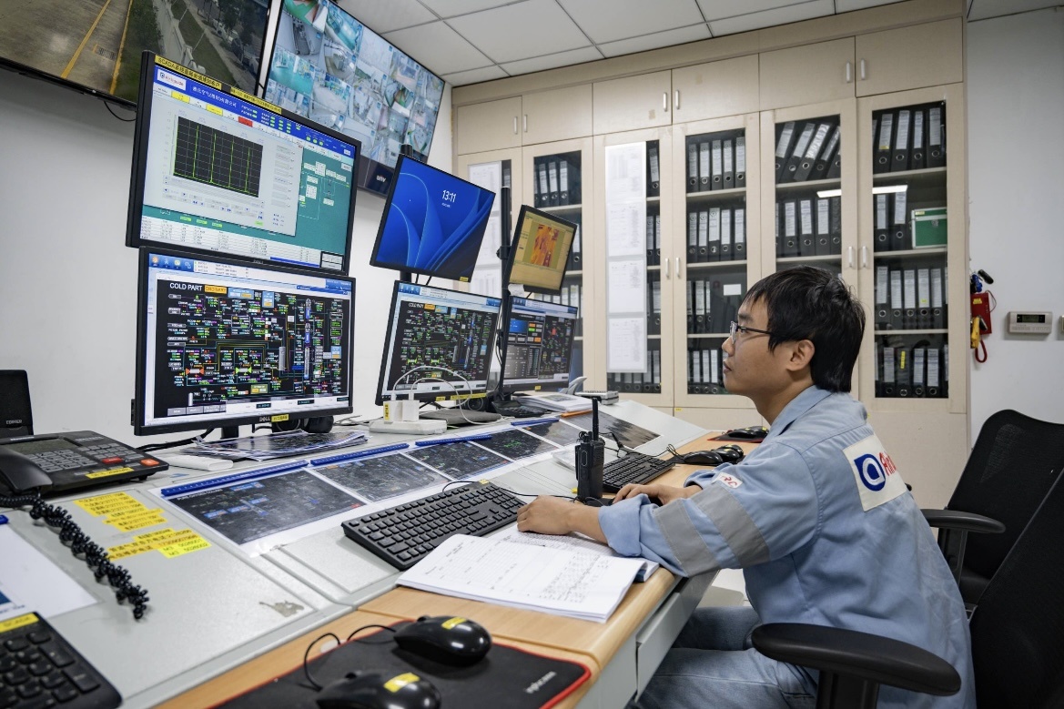 这是因为工厂拥有全自动生产线。借助每个车间内的监控摄像头、红外监测装置、气体探测仪等设备,压力、流量、温度等重点工艺参数在工厂监控中心的数字屏幕上实时显示。“有了这套系统,仅需一名工作人员,就能实现对生产工艺流程的全程监控,相当于是‘黑灯工厂’。”吴传龙告诉记者,如果工艺参数出现异常,系统会发出报警,提醒操作人员前往现场查看并进行相应调整,以保证可靠稳定地生产。