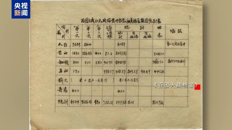 桂腾飞:在这个档案的记载当中我们可以看到,仅晋中一地动员的民兵数量就达到了万余人。老乡们还为战士们准备了菜蔬、鸡羊、炒面等。通过档案的记载,我们仿佛回到了革命年代,看到了我们军民一心、同仇敌忾的感人一幕。