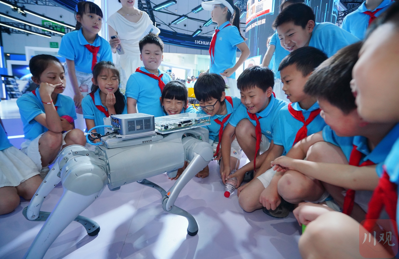 四川芯华创新中心研发的四足智能机器狗“芯华狗”受小朋友喜欢。
