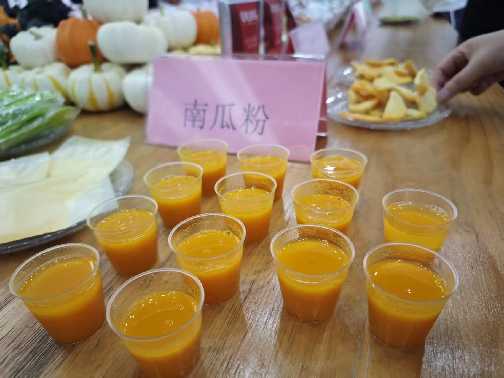与会人员了解南瓜加工产品有关情况。