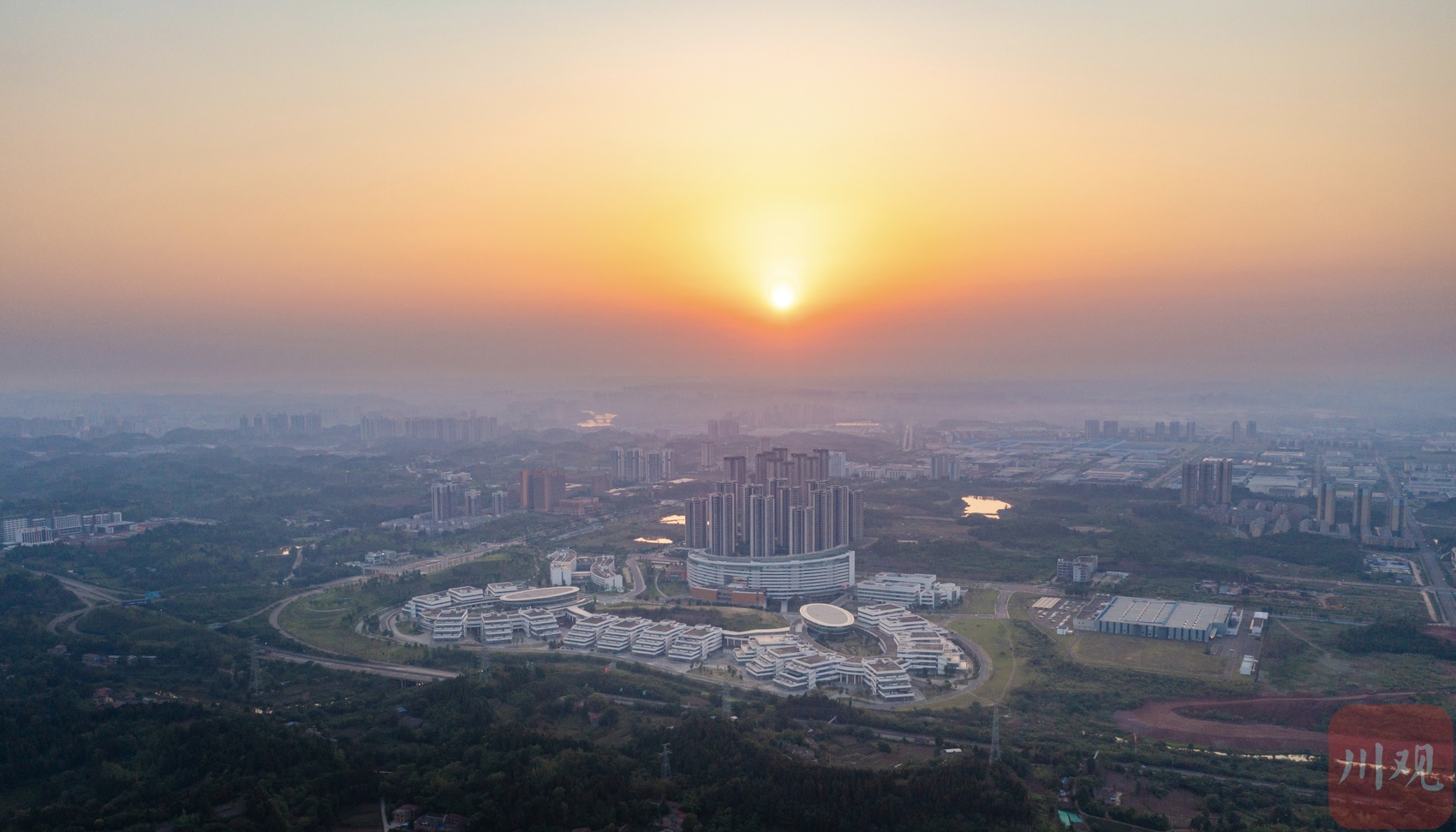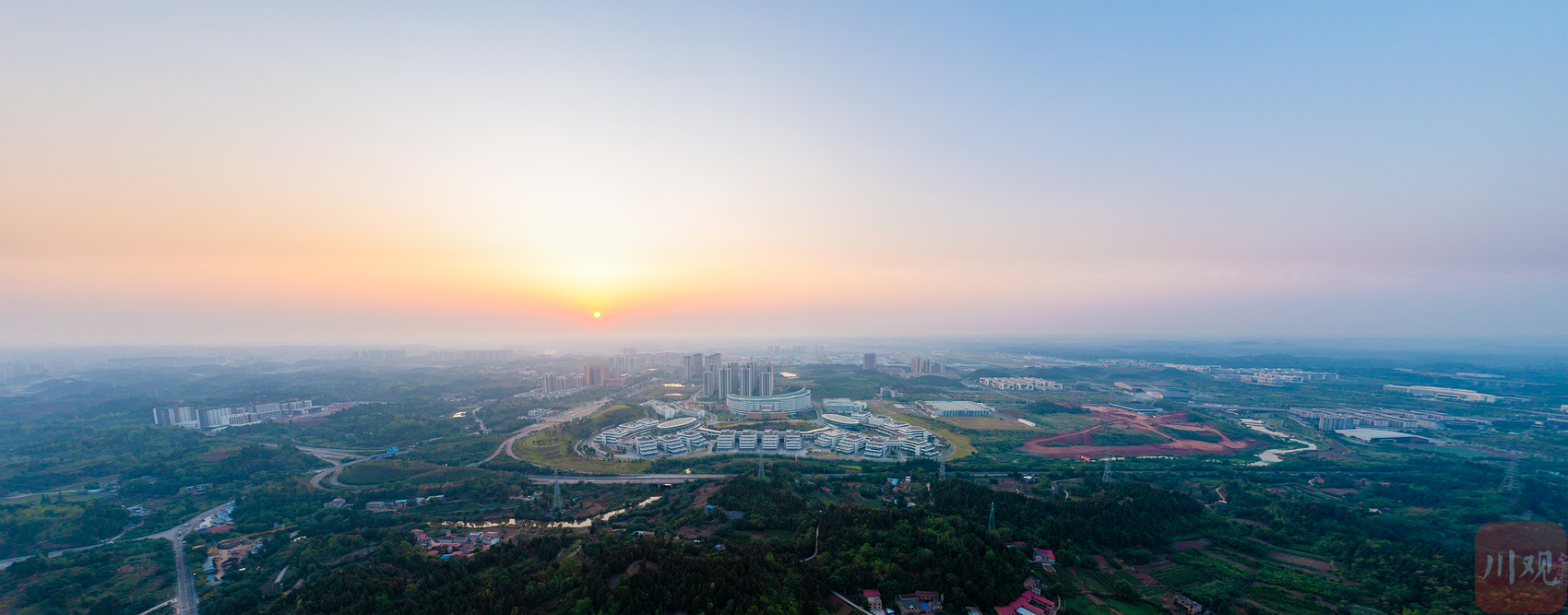6月11日清晨,资阳高新区“中国牙谷”在朝霞映照下展现出如诗画般的景致。晨曦中的现代化产业园与自然风光交融,构成了一幅科技与生态和谐共生的动人画卷。