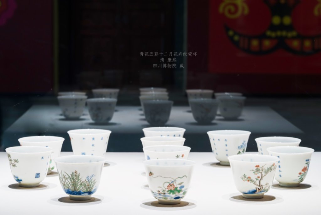 康熙青花五彩十二月花卉瓷杯 清 四川博物院藏 (张艳 摄)