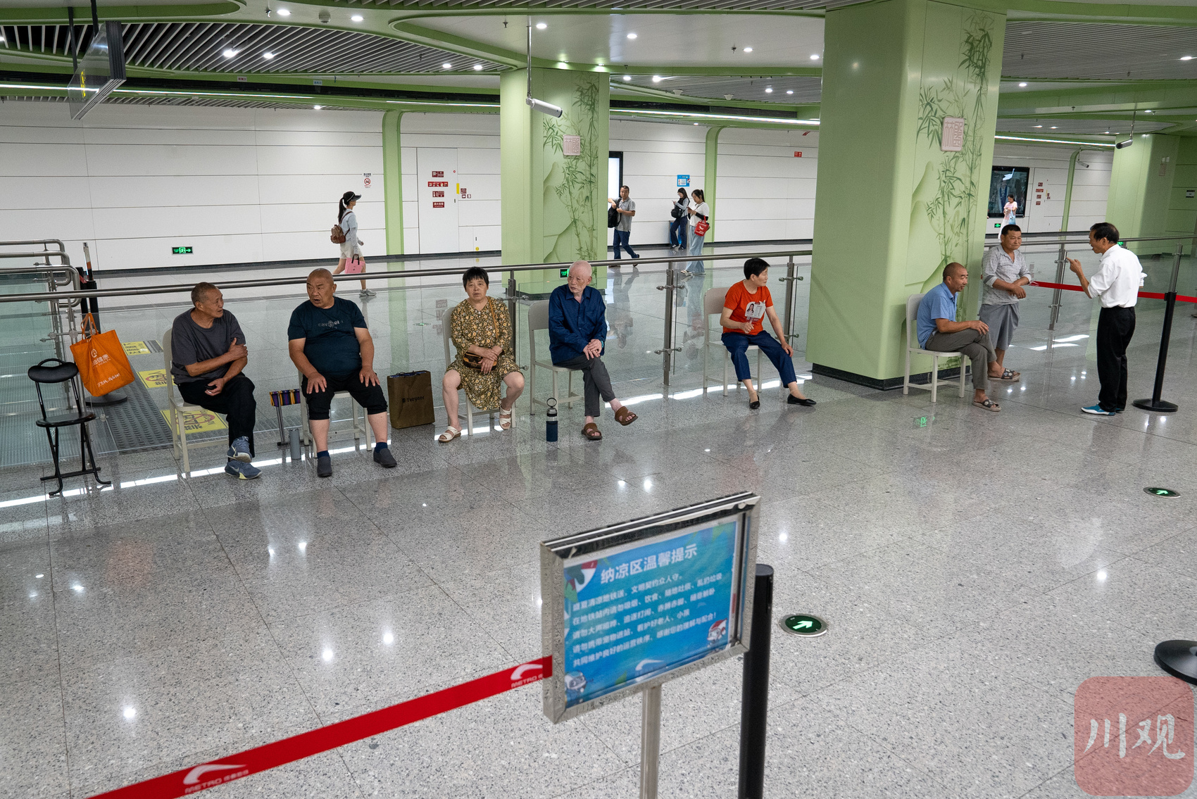 高温天气下,地铁站成为市民避暑首选。6月12日下午,记者在成都地铁9号线培风站看到,不少市民在站内纳凉区休息——老人闲话家常,孩童嬉戏玩耍,地铁站化身“临时避暑驿站”。