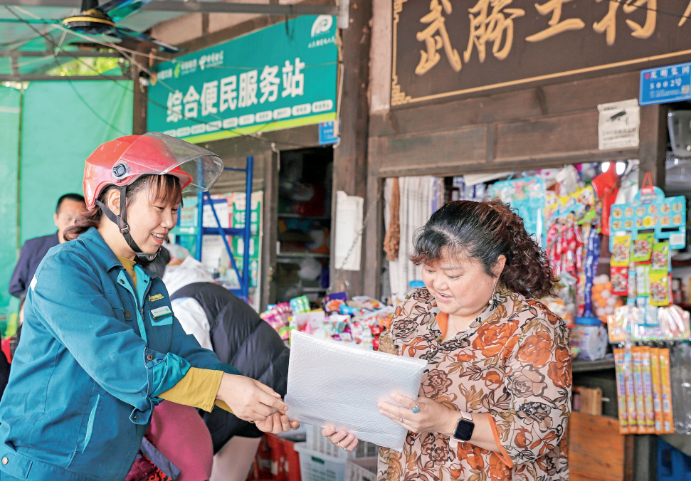 近日,广安市武胜县乐善镇水洞湾村蜿蜒的村道上,快递员张裕如往常般骑着三轮车往返穿梭。道路两旁,“普兴村物流综合服务站”“青龙村快递揽收点”等招牌不断映入眼帘。