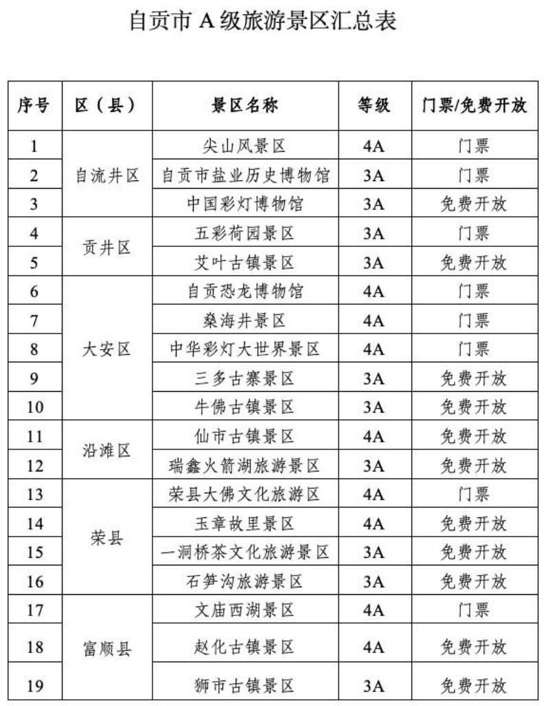 此次活动涵盖尖山风景区、自贡市盐业历史博物馆、燊海井、荣县大佛文化旅游区、文庙西湖景区、五彩荷园等19家A级旅游景区。