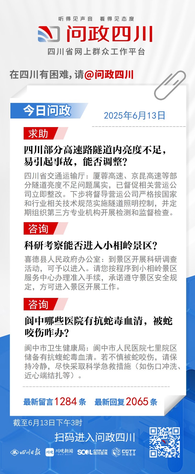 “问政四川”真的棒!不管是出行安全、科研需求,还是突发状况、隐患排查,只要群众有难题,平台就有回应、有行动,真正架起了民意“连心桥”!