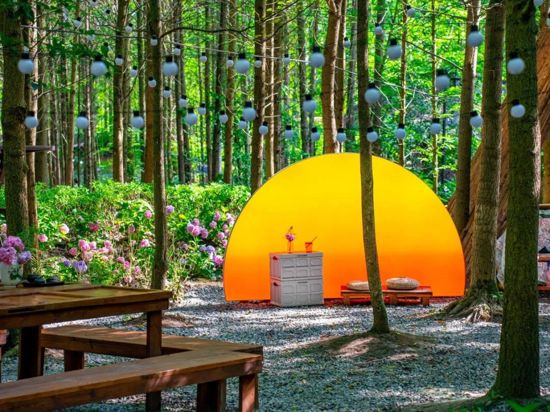“我们卖茶,也提供‘森林时间’体验”。”绿光森林营地主理人杨玉莹介绍,营地左侧的“森系会客厅”配备智能投影设备,满足团建会议需求;中庭的“仲夏夜之梦”专区布满发光装置,专为夜间经济打造;深处的“云端花园”提供求婚定制服务。该营地从最初的单一茶饮服务,已升级为涵盖团建会议、婚庆策划、自然教育的复合业态。