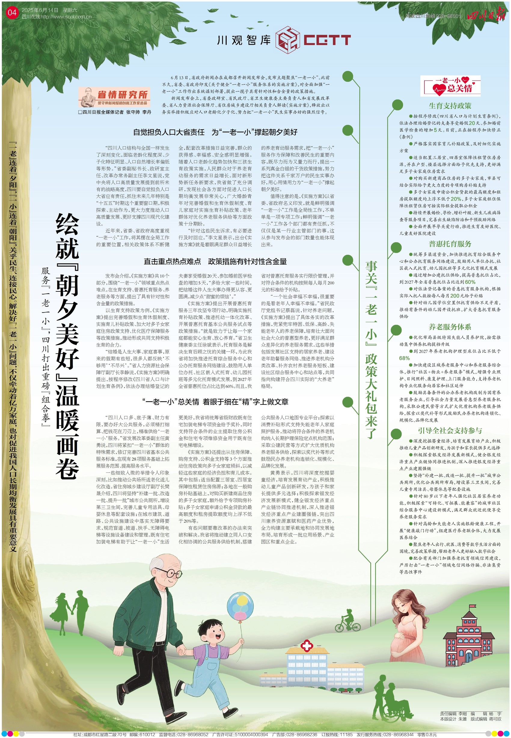昨日,《关于健全“一老一小”服务体系的实施方案》新闻发布会举行。《实施方案》共10个部分,在生育支持、普惠托育服务、养老服务等方面,提出了具有针对性和含金量的政策措施,送出一系列“一老一小”惠民政策大礼包。方案具体有哪些亮点?关注一、四版了解详情。