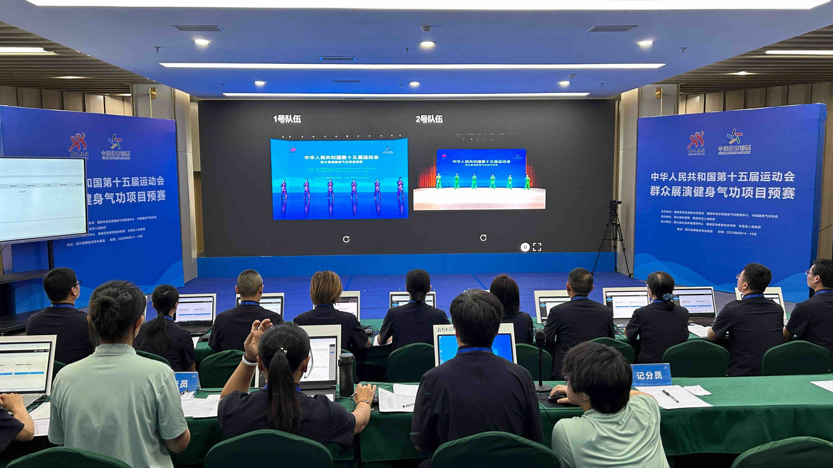 比赛设置易筋经、五禽戏、八段锦、马王堆导引术、太极养生杖及气舞等六大传统健身气功项目,共计194场展演。为适应群众赛事规模大、地域广的特点,组委会创新采用“云端展演+集中评审”模式——参赛队伍线上提交视频,通过电子抽签确定评审顺序,裁判组线下集中评判,确保赛事高效公平。