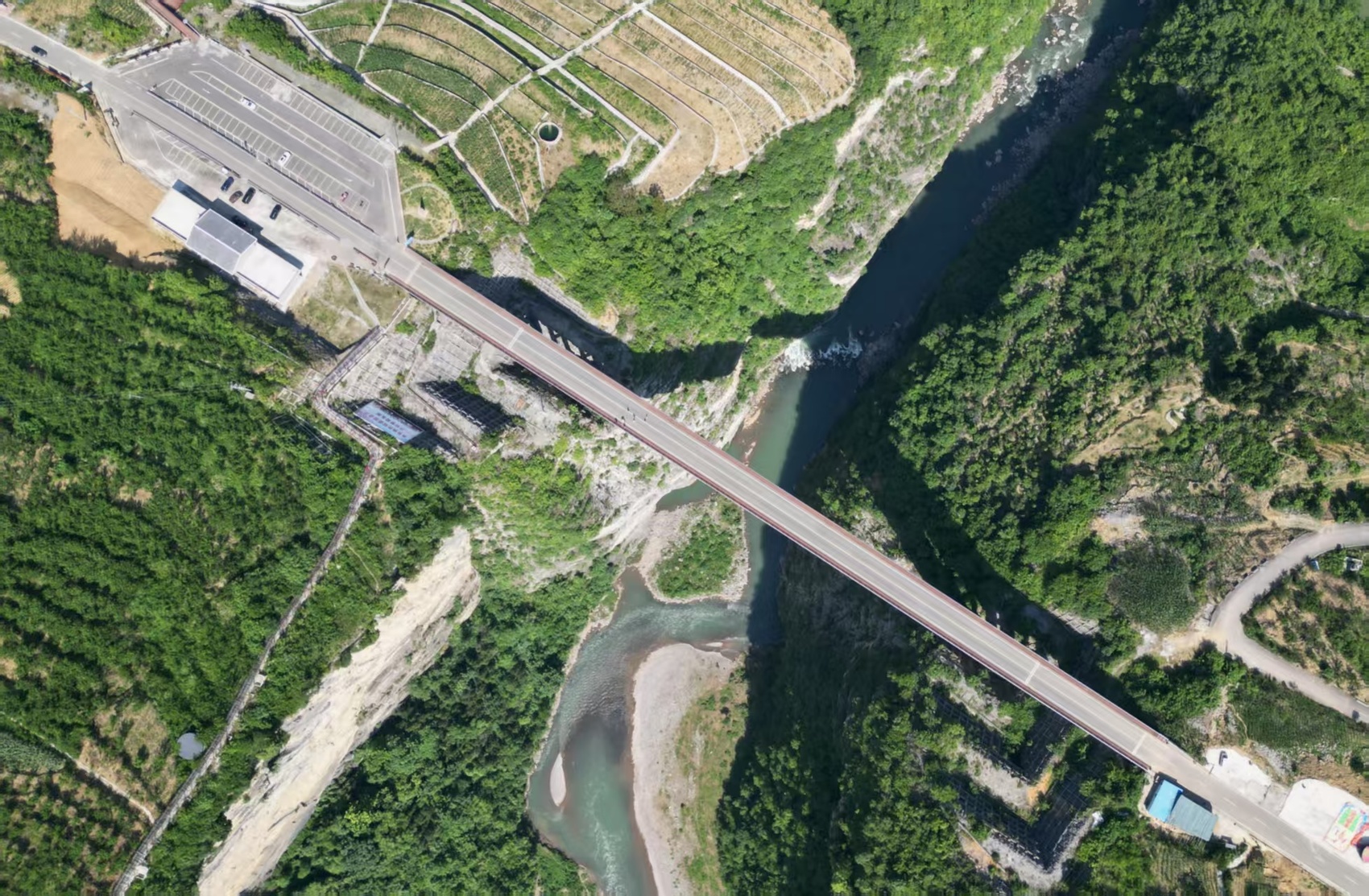 在果哈河与渭河交汇的“Y”形大峡谷处,水流湍急,崖壁险峻,鸡鸣三省大桥坐落于此,连接着四川省泸州市叙永县水潦彝族乡赤水河村和云南省昭通市镇雄县坡头镇德隆村,宛如一条巨龙横卧在峡谷之上。