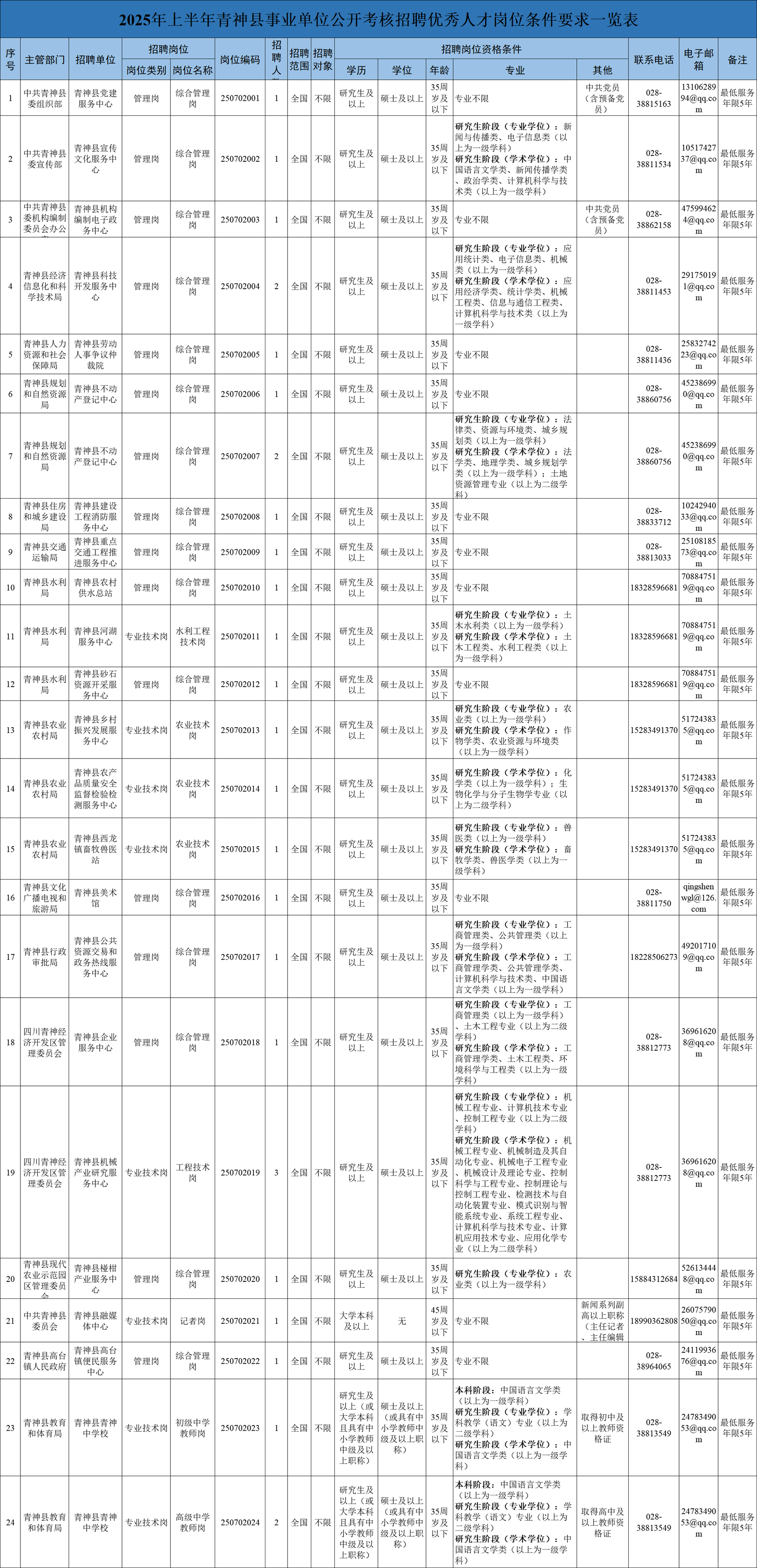 招聘公告详见青神县人民政府网“政务公开——人事信息”专栏。